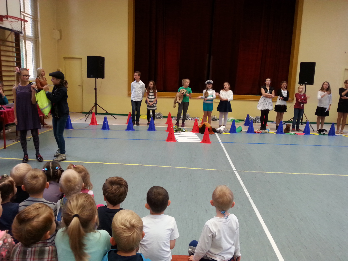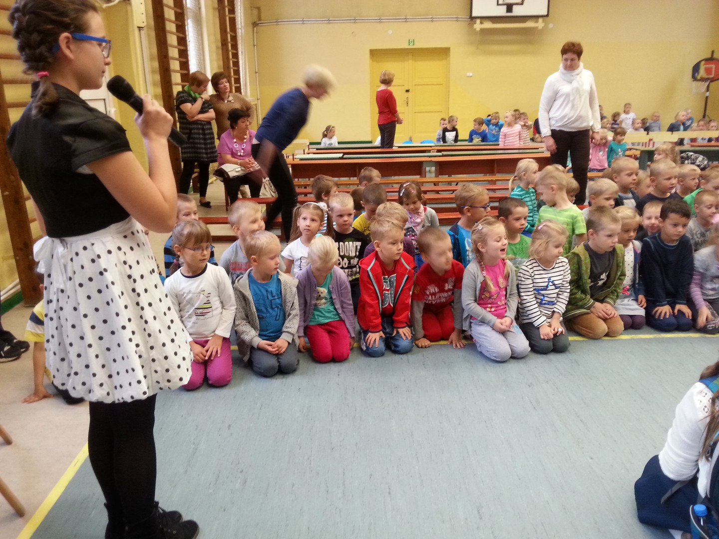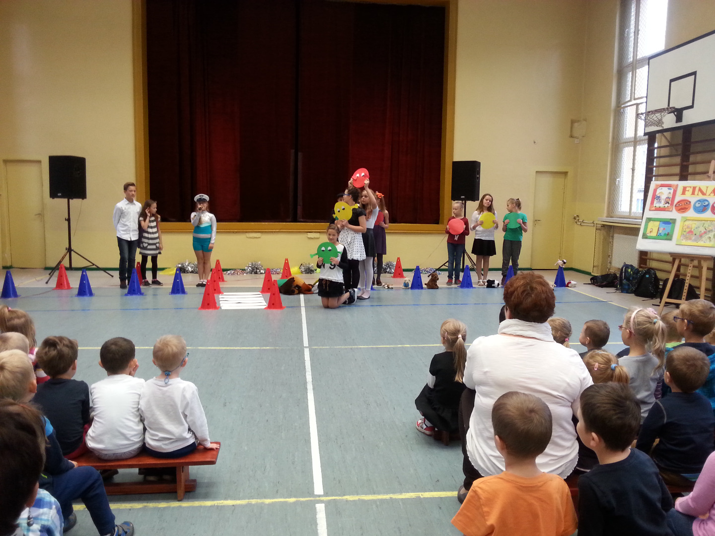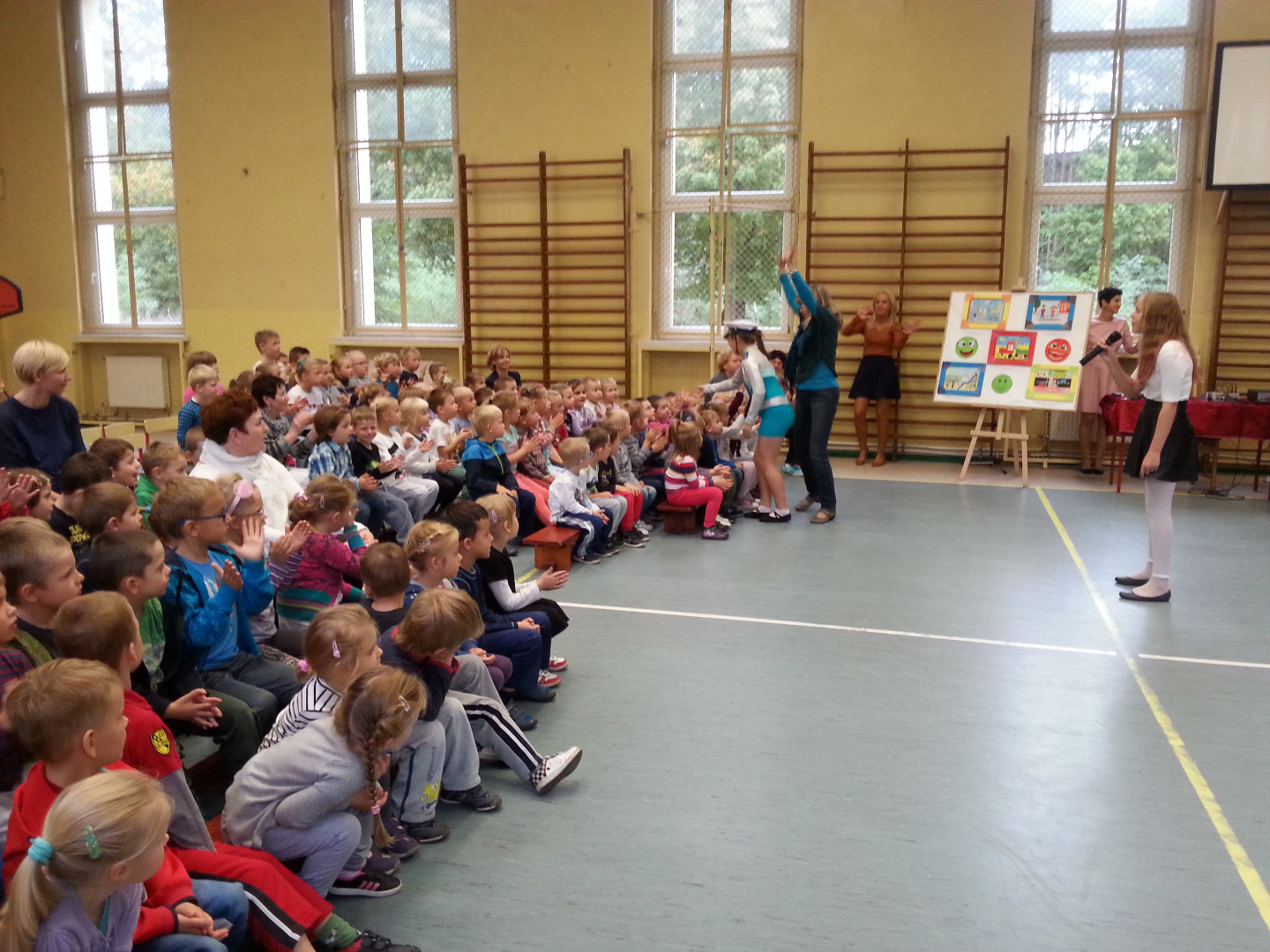 30 września Starszaki wybrały się do Szkoły Podstawowej nr 1 na spektakl pod tytułem „Pierwszy dzień w szkole, więc opowiem ci o bezpieczeństwie”. Uczniowie z kółka dziennikarskiego, prowadzonego przez panią Grażynę Świercz i teatralnego, prowadzonego przez panią Magdalenę Dudkiewicz zaprezentowały scenki tematycznie związane z bezpieczeństwem na drodze, przypomnieli pozycje "żółwik" i "latarnia", zasady kontaktów z obcymi oraz bezpiecznego korzystania z Internetu. Przedszkolaki z wielkim zainteresowaniem słuchały starszych kolegów, z dużym zaangażowaniem przyjmowały pozycje „żółwika” oraz „latarni”. Chórem podpowiadały jak prawidłowo się zachowywać, dzieląc się swoją wiedzą zdobytą w przedszkolu i przestrzegały mówiąc: „OJ NIE NIE, TO SIĘ MOGŁO SKOŃCZYĆ ŹLE!!!”. Na koniec nagrodziliśmy młodych artystów gromkimi brawami.