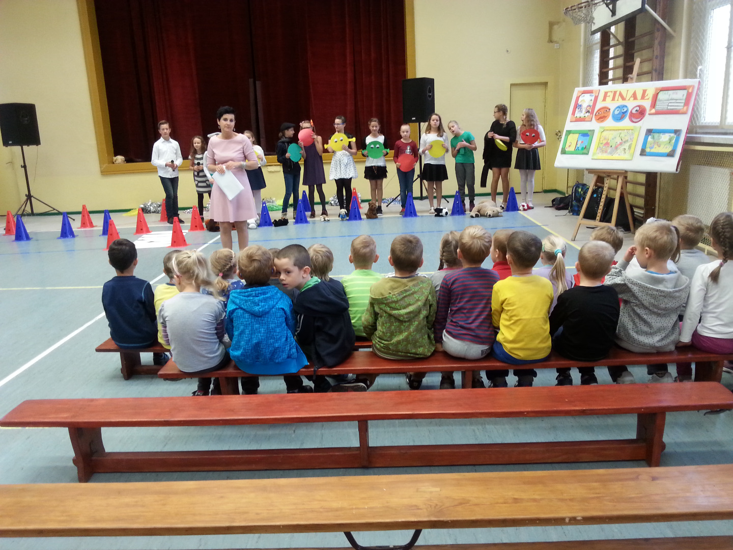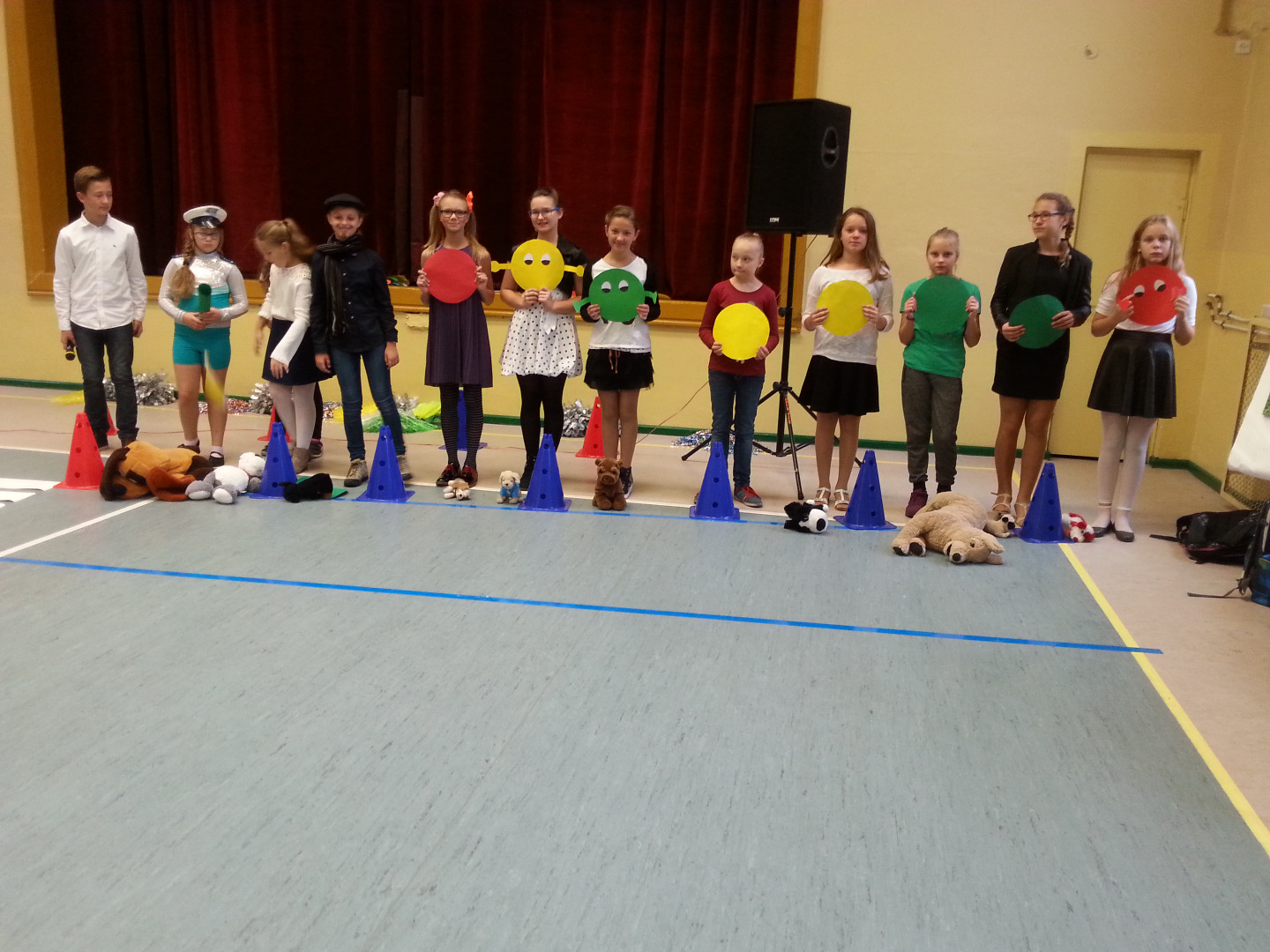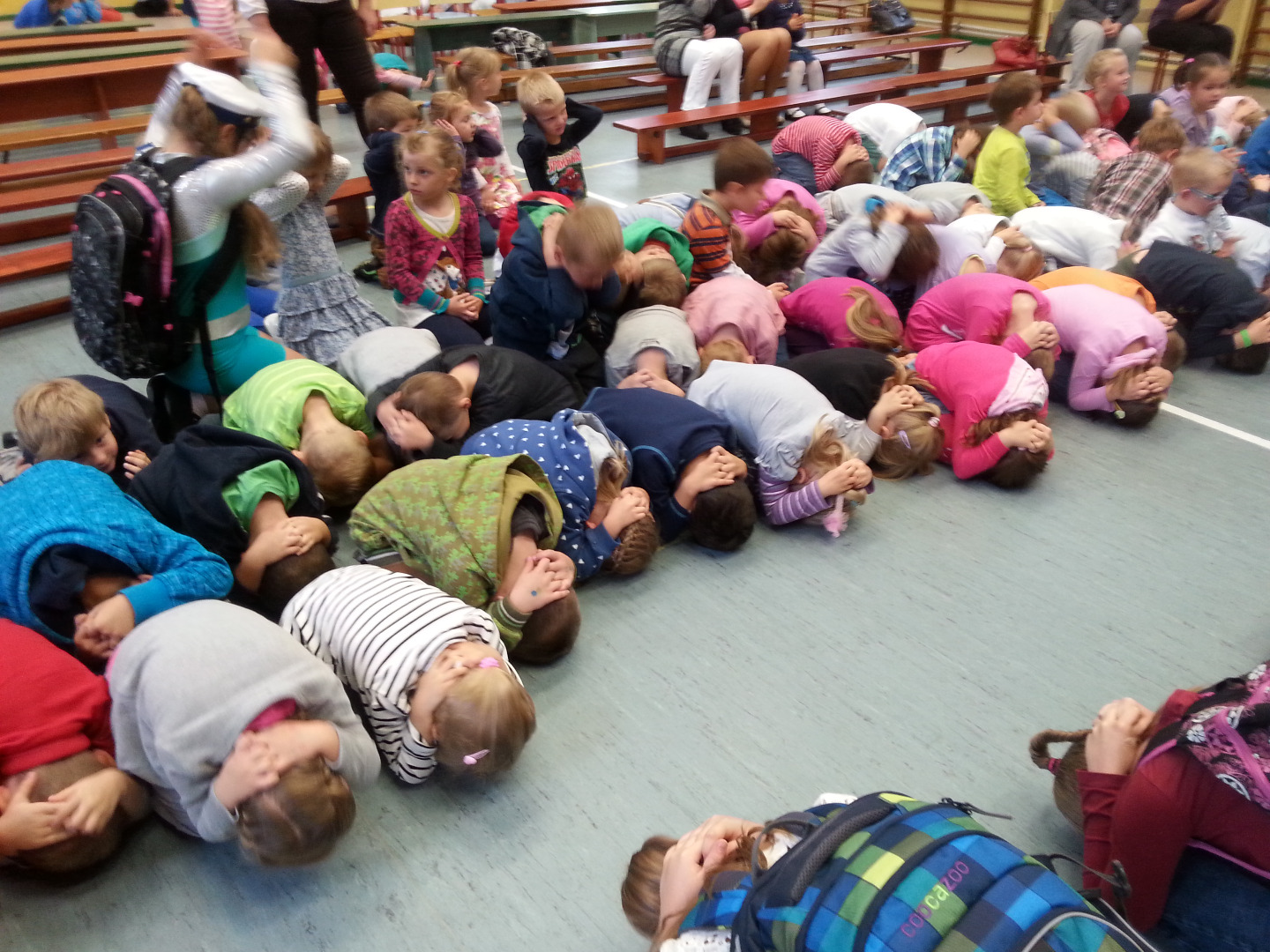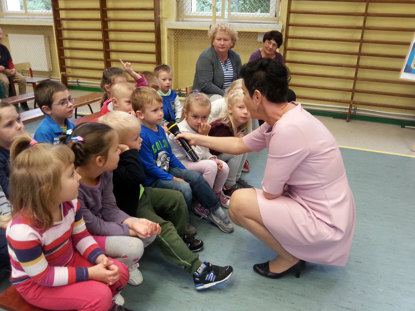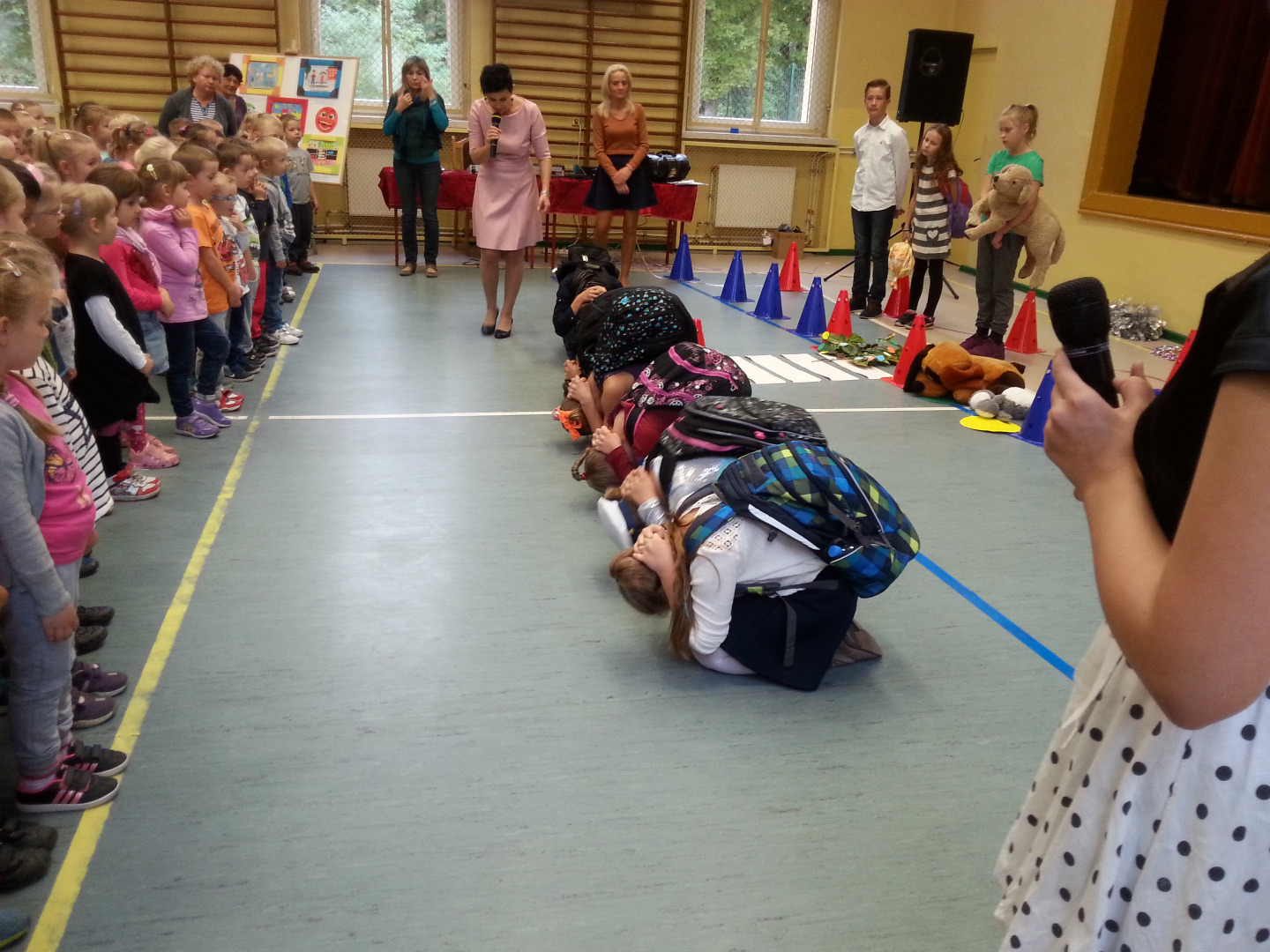 30 września Starszaki wybrały się do Szkoły Podstawowej nr 1 na spektakl pod tytułem „Pierwszy dzień w szkole, więc opowiem ci o bezpieczeństwie”. Uczniowie z kółka dziennikarskiego, prowadzonego przez panią Grażynę Świercz i teatralnego, prowadzonego przez panią Magdalenę Dudkiewicz zaprezentowały scenki tematycznie związane z bezpieczeństwem na drodze, przypomnieli pozycje "żółwik" i "latarnia", zasady kontaktów z obcymi oraz bezpiecznego korzystania z Internetu. Przedszkolaki z wielkim zainteresowaniem słuchały starszych kolegów, z dużym zaangażowaniem przyjmowały pozycje „żółwika” oraz „latarni”. Chórem podpowiadały jak prawidłowo się zachowywać, dzieląc się swoją wiedzą zdobytą w przedszkolu i przestrzegały mówiąc: „OJ NIE NIE, TO SIĘ MOGŁO SKOŃCZYĆ ŹLE!!!”. Na koniec nagrodziliśmy młodych artystów gromkimi brawami.