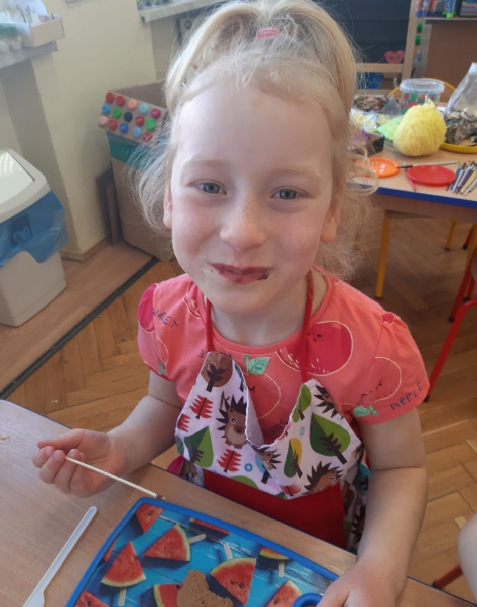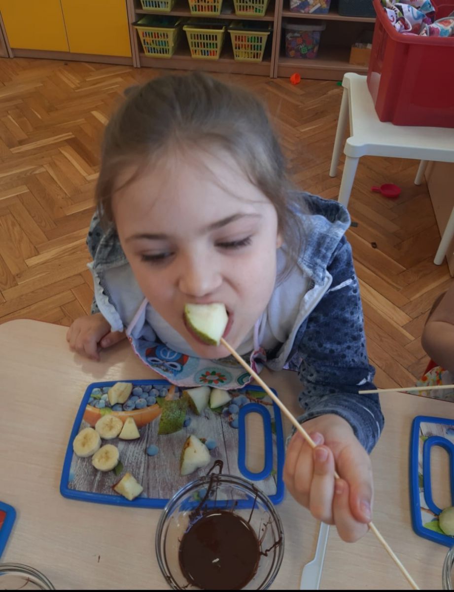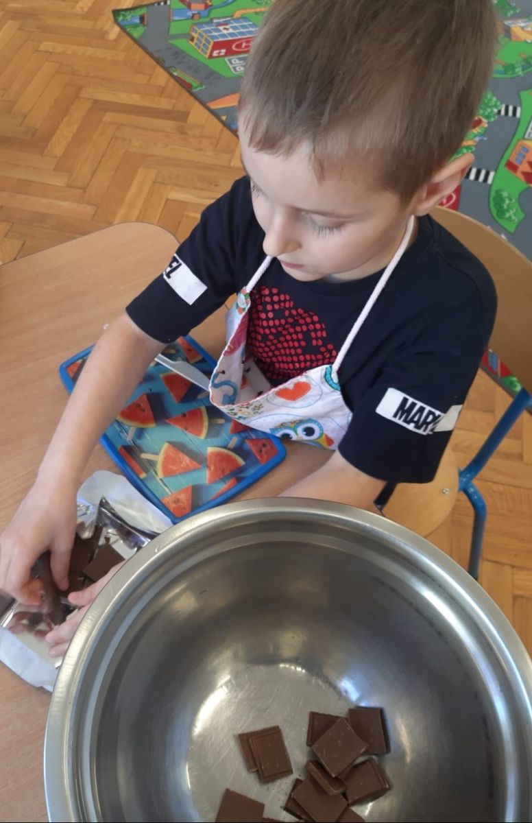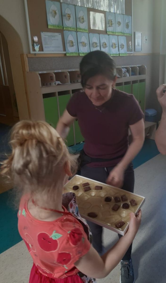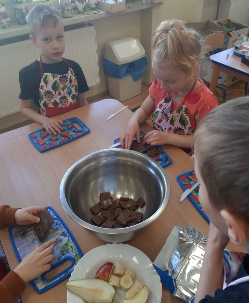 Dnia 12 kwietnia w Przedszkolu Publicznym Nr 1 w Ozimku obchodziliśmy przepyszne święto - Dzień Czekolady. A wiecie, że w każdym kraju obchodzi się to święto w inny dzień? W Polsce Dzień Czekolady obchodzimy dzisiaj, czyli 12 kwietnia. Wszyscy wielbiciele słodkiego przysmaku mają więc mnóstwo sposobności, by uczcić doskonałe odkrycie, jakim jest czekolada. Dzieci z grupy „Witaminek” były w znakomitym humorze od rana pełne chęci i zapału do zgłębiania wiedzy na temat czekolady. Z opowiadań oraz prezentacji multimedialnej dowiedziały się jak powstaje ich ulubiony przysmak, następnie miały okazję do degustacji płynnej czekolady i maczanych w niej owoców. Kolejnym przyjemnym punktem były zabawy plastyczne oraz "czekoladowe zawody". Ten słodki dzień bardzo przypadł przedszkolakom do gustu.Mnnniaam…