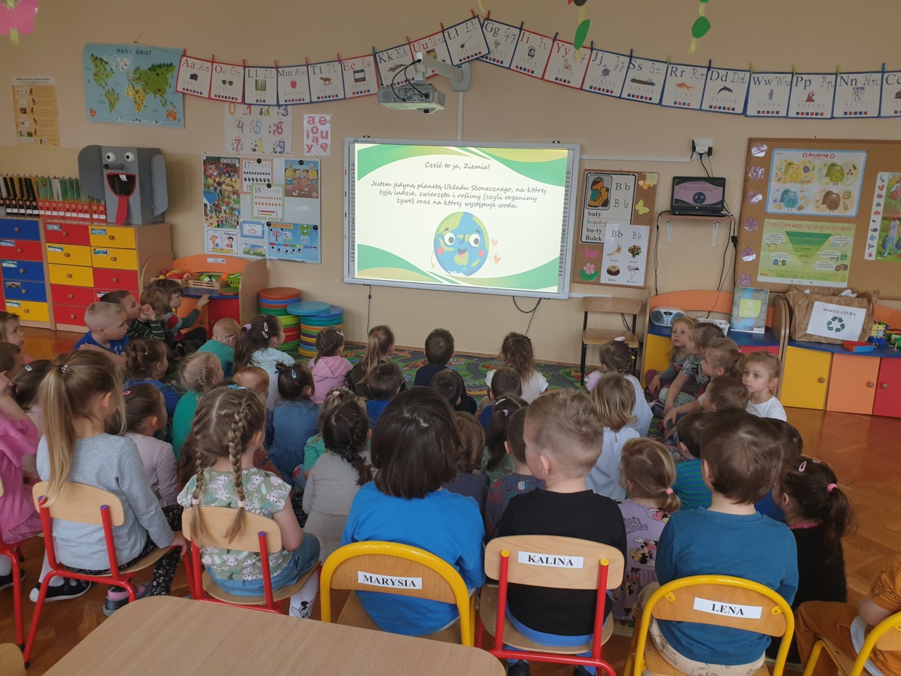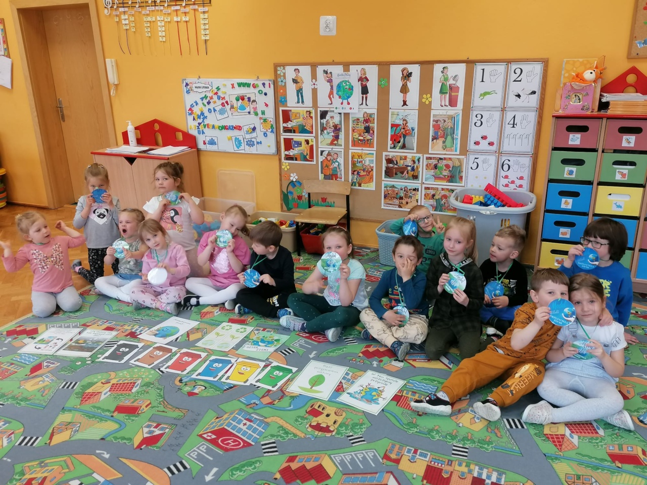22 kwietnia 2022r.całe nasze przedszkole świętowało Dzień Ziemi. Przeprowadziliśmy pogadanki o tematyce ekologicznej, ochronie środowiska, dowiedzieliśmy się jak dbać o Ziemię, a także o tym, jak niektóre działania ludzi ją niszczą. Dla dzieci w Przedszkolu Publicznym Nr 1 w Ozimku dzień był szczególnie atrakcyjny ze względu na różnorodność zajęć i zabaw. Najmłodszym najbardziej do gustu przypadł film wyświetlony na tablicy interaktywnej. Wyjaśnialiśmy terminy „Ekologia”, „segregacja śmieci”, „recykling”. Pojawiły się zabawy muzyczno-integracyjne pod hasłem „Dbamy o Ziemię” oraz zabawy dydaktyczne „Jak segregować śmieci?” Podsumowaniem tematu była praca plastyczna, a także wręczenie medali dla Przyjaciół Ziemi.