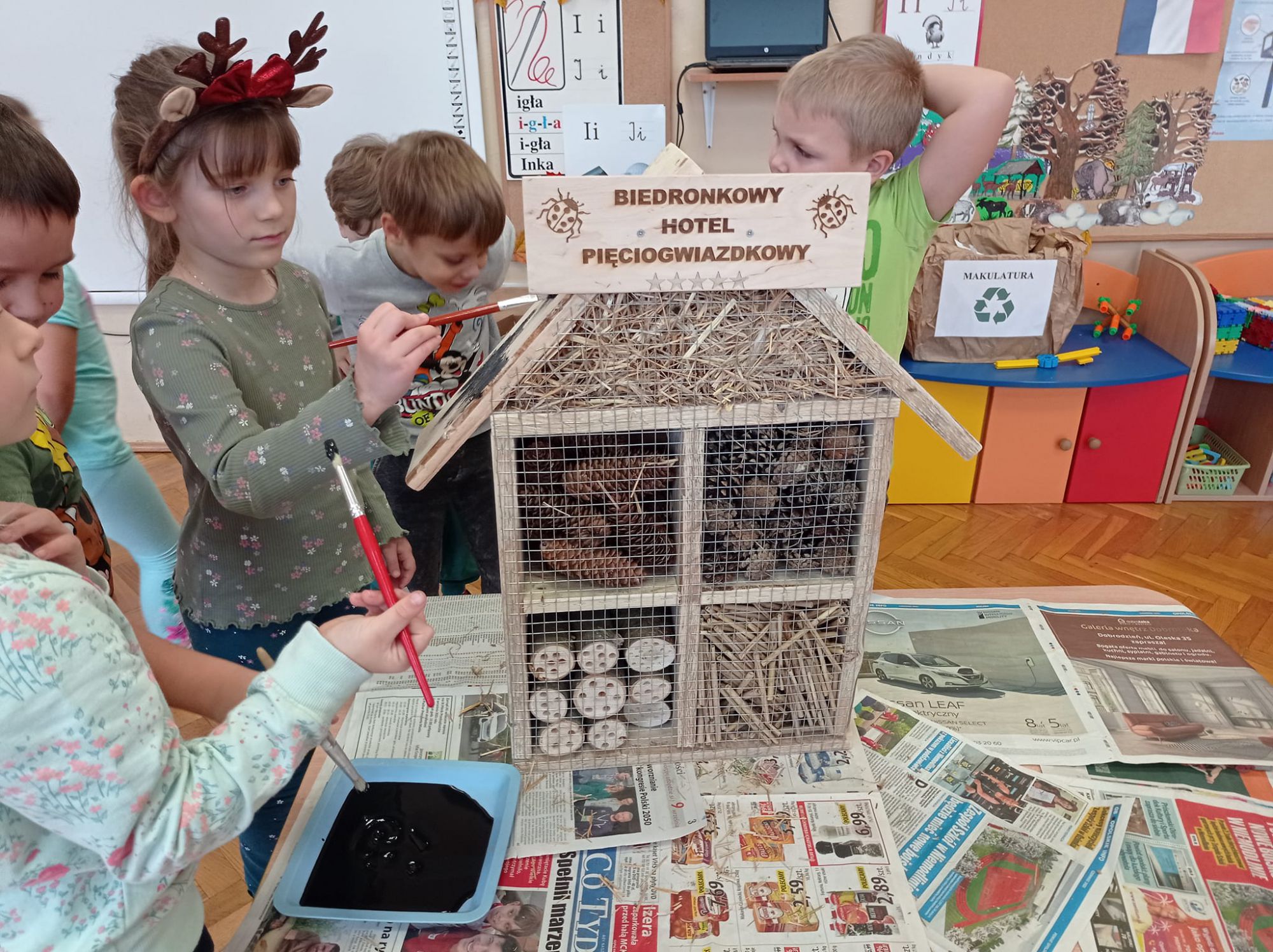 W grupie Biedronek w Przedszkolu Publicznym Nr 1 w Ozimku realizowany był projekt organizowany przez Wydawnictwo Bliżej Przedszkola, który nosił nazwę „EKOKULTURALNE PRZEDSZKOLE”. Projekt polegał na podejmowaniu różnych akcji na rzecz naszej planety, aby już od najmłodszych lat zaszczepić w dzieciach chęć do działania i pokazać, że każdy ma wpływ na kondycję Ziemi i jest za nią odpowiedzialny. W każdym miesiącu - od września do maja - pojawiało się nowe zadanie do wykonania w grupie. Pierwszym ekowyzwaniem było zorganizowanie w sali ZIELONEGO KĄCIKA. Biedronki przyniosły wiele pięknych kwiatów i zielonych roślin, które nie tylko pomogły zrealizować zadanie, ale dodatkowo udekorowały kącik przyrodniczy na cały rok szkolny. W październiku wykonaliśmy KĄCIK MAKULATURY. Od tej pory, zużyty przez Biedronki papier, nie trafiał już do kosza, ale był ponownie wykorzystany, w celu zaspokojenia ekspresji twórczej dzieci. W listopadzie zbudowaliśmy BIEDRONKOWY HOTEL PIĘCIOGWIAZDKOWY, który stał się ostoją dla zimujących owadów. Pierwszy śnieg zachęcił nas do wykonania grudniowego ekozadania - PTASIEJ STOŁÓWKI. Ze starych, niepotrzebnych kubków, zrobiliśmy mini-karmniki, które służyły ptakom przez resztę zimy. Na początku nowego roku kalendarzowego, wykonaliśmy wspólnie POŻERACZA NAKRĘTEK i zorganizowaliśmy zbiórkę nakrętek dla Franka Lesia. Akcja zakończyła się sukcesem, a wszystkie zgromadzone nakrętki trafiły do chłopca. W lutym biedronkowa sala zamieniła się w zakład krawiecki, w którym daliśmy DRUGIE ŻYCIE ZIMOWYM UBRANIOM. Dziurawe rękawiczki i za małe skarpetki zamieniły się w przeróżne stworzenia. W marcu z okazji Dnia Wody, przypomnieliśmy sobie, jak oszczędzać wodę, realizując w ten sposób kolejne zadanie. Kwiecień to miesiąc poświęcony książkom, więc tym razem zorganizowaliśmy PRZYSTANEK WĘDRUJĄCEJ KSIĄŻKI. Na zakończenie projektu, w Dniu Dziecka zbudowaliśmy MOBILNĄ MINIKUCHNIĘ BŁOTNĄ. Dzieci przyniosły z domu niepotrzebny sprzęt kuchenny i wspólnie gotowały, pichciły oraz przygotowywały najróżniejsze potrawy. To był wspaniały czas, który wiele nas nauczył i pokazał, że małymi kroczkami możemy zmienić świat na lepsze - przy okazji dobrze się przy tym bawiąc.