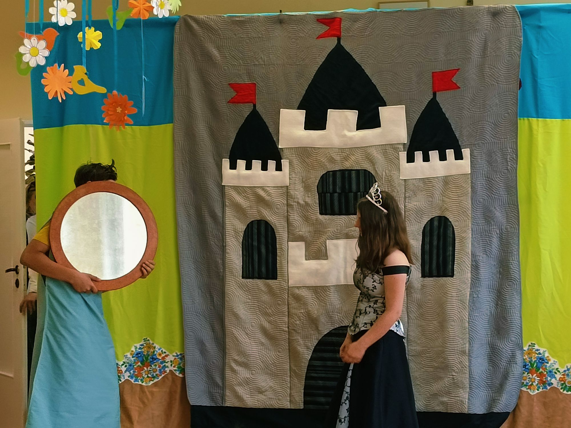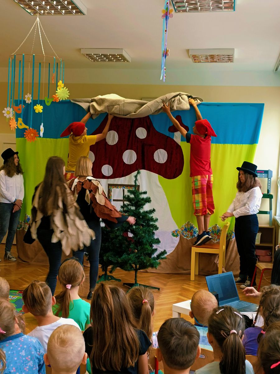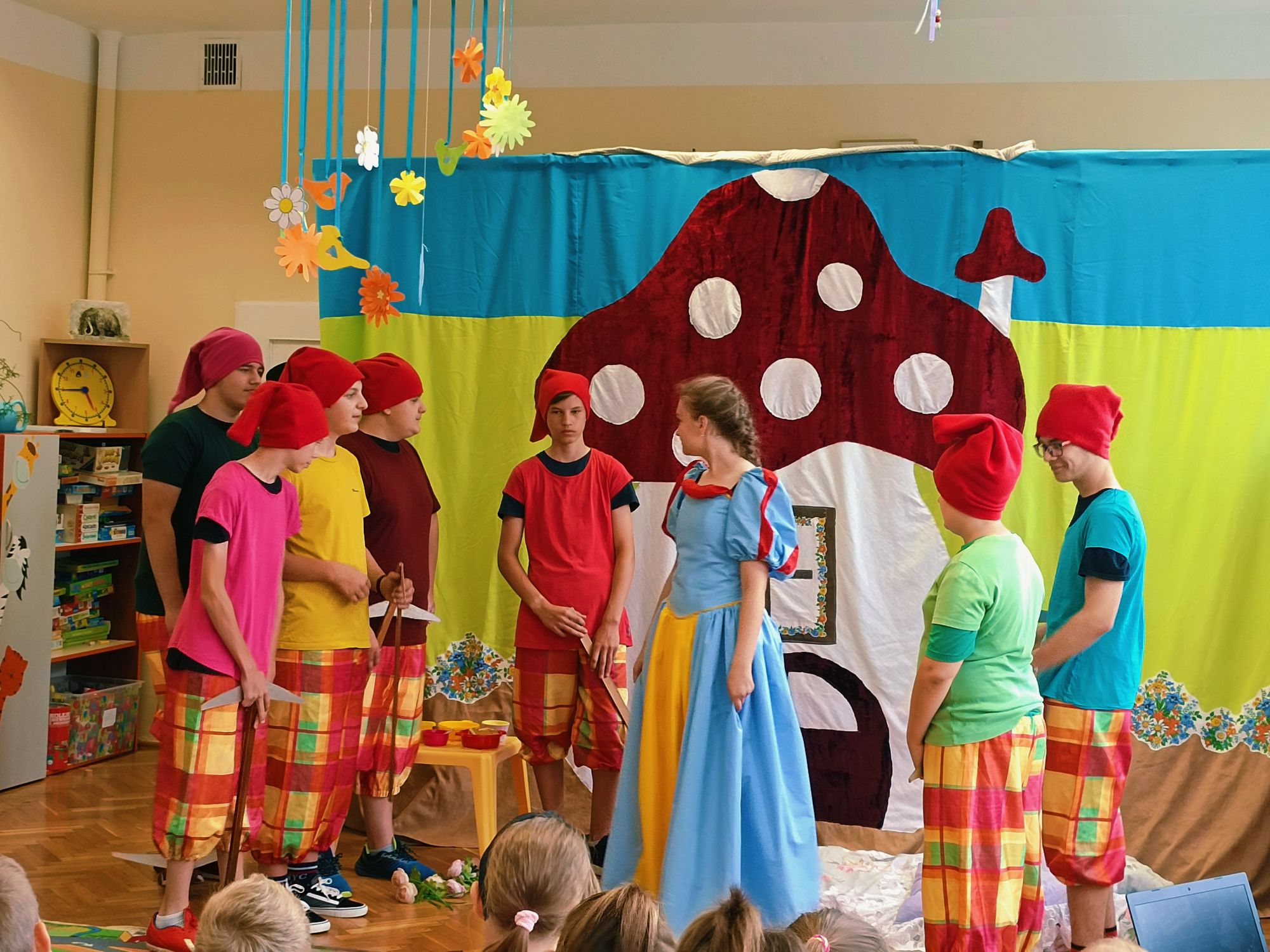Dnia 21 czerwca 2022r. wzięliśmy udział w magicznym spektaklu pt.„Królewna Śnieżka i siedmiu krasnoludków” w wykonaniu uczniów Publicznej Szkoły Podstawowej Nr 2 w Ozimku. Reżyserią i choreografią zajęła się pani Ewa Dorynek – nauczycielka prowadząca szkolny zespół teatralny. Każdego z nas zachwyciły układy choreograficzne, nastrojowa oprawa muzyczna, bajkowe kostiumy i scenografia ! Hej ho, hej ho, na spektakl by się szło! Spektakl był oparty na motywach baśni braci Grimm „Królewna Śnieżka”. To opowieść o przyjaźni, miłości i walce dobra ze złem. Bajka uczy, że warto pomagać. Pokazuje, że zło i zazdrość to niszczące emocje.Barwne, pełne dobrego humoru przygody pięknej Śnieżki i krasnoludków poruszają serca i wyobraźnię młodego widza. Na największe uznanie zasługują jednak młodzi aktorzy. Świadomie i z widoczną wprawą operowali też gestem, mimiką, a nade wszystko głosem. To właśnie dzięki grze aktorskiej spektakl był wartki, dynamiczny, a przy tym bardzo przejrzysty i zrozumiały nawet dla najmłodszych widzów, którzy reagowali bardzo żywiołowo. Gratulujemy twórcom i dziękujemy, że raz jeszcze mieliśmy okazję spotkać się z postaciami ze znanej co prawda, ale wciąż żywej i aktualnej baśni.