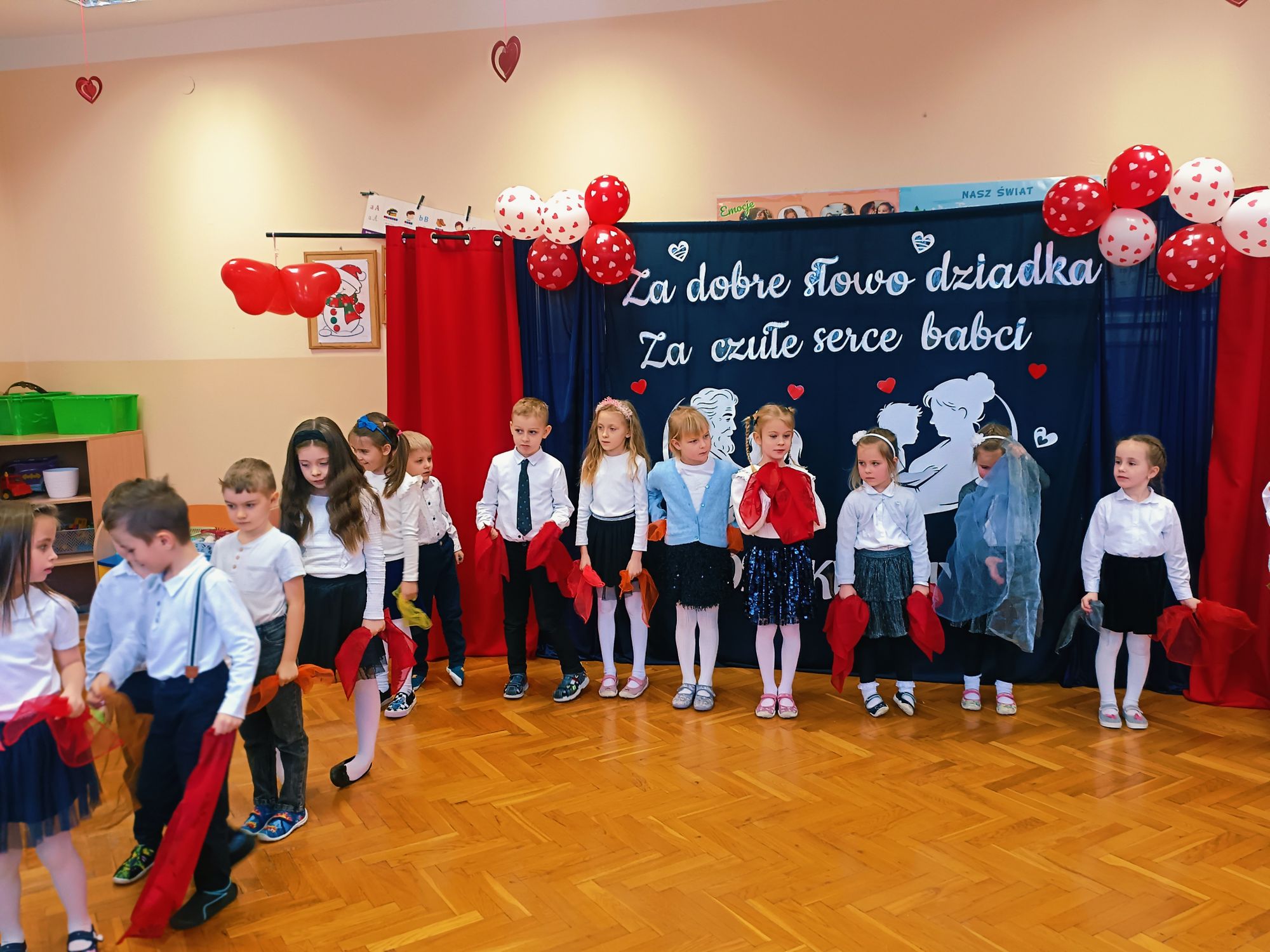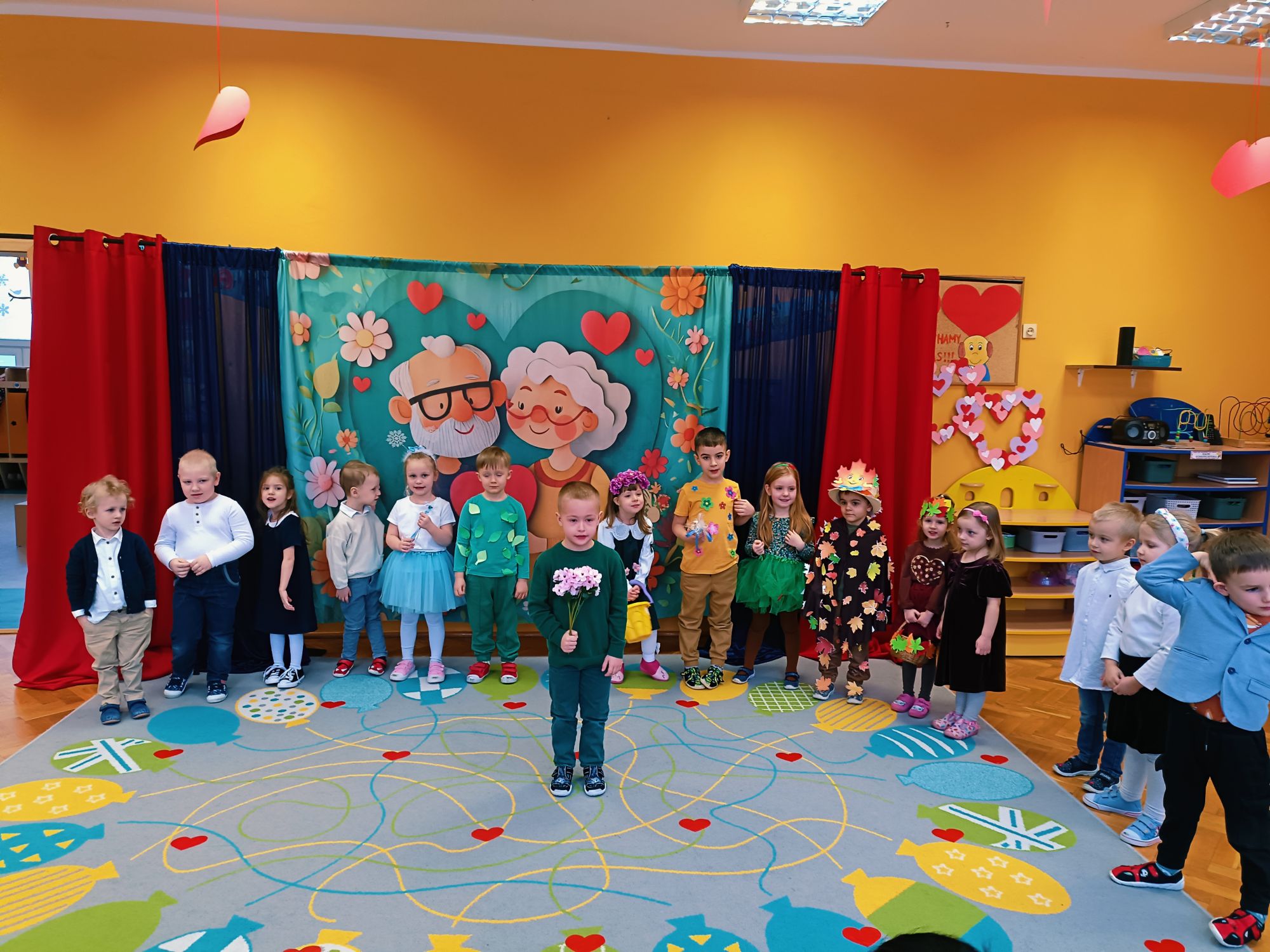 W ostatnim tygodniu stycznia  w Przedszkolu Publicznym Nr 1 w Ozimku  odbyły się w każdej z grup przedszkolnych  uroczyste spotkania dzieci z naszego przedszkola z Babciami i Dziadziami  z okazji ich święta. Dni  te, nie tylko dla dzieci, ale przede wszystkim dla Babć i Dziadziów pełne były radosnych uśmiechów, wzruszeń i łez. W życiu i serduszku każdego dziecka, Dziadkowie zajmują szczególne miejsce, bo kto pocieszy, najczulej przytuli, znajdzie radę na każde zmartwienie, upiecze szarlotkę, u kogo są najcudowniejsze wakacje i święta? Z okazji Dnia Babci i Dziadka dzieci ze wszystkich grup przygotowały dla nich wyjątkowy program artystyczny: recytowały okolicznościowe wiersze, śpiewały piosenki, tańczyły wyrażając w ten sposób swoją miłość i wdzięczność za ich trud i oddanie. Każdy wnuczek i wnuczka własnoręcznie wykonały również dla swoich ukochanych Dziadków laurkę i drobny upominek. Kochanym Babciom i drogim Dziadziom jeszcze raz życzymy dużo zdrowia, pomyślności, samych pięknych chwil, długiego życia i tego, aby zawsze byli dumni ze swoich wnuków.