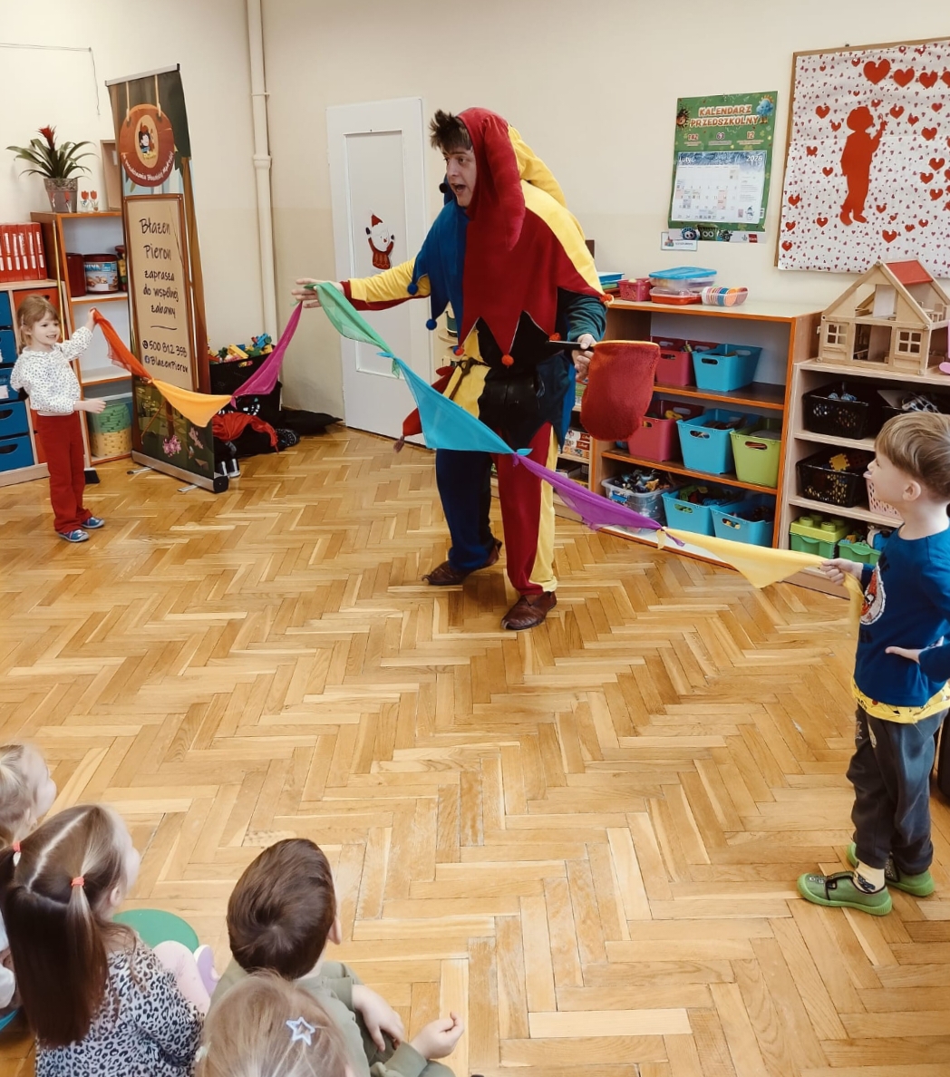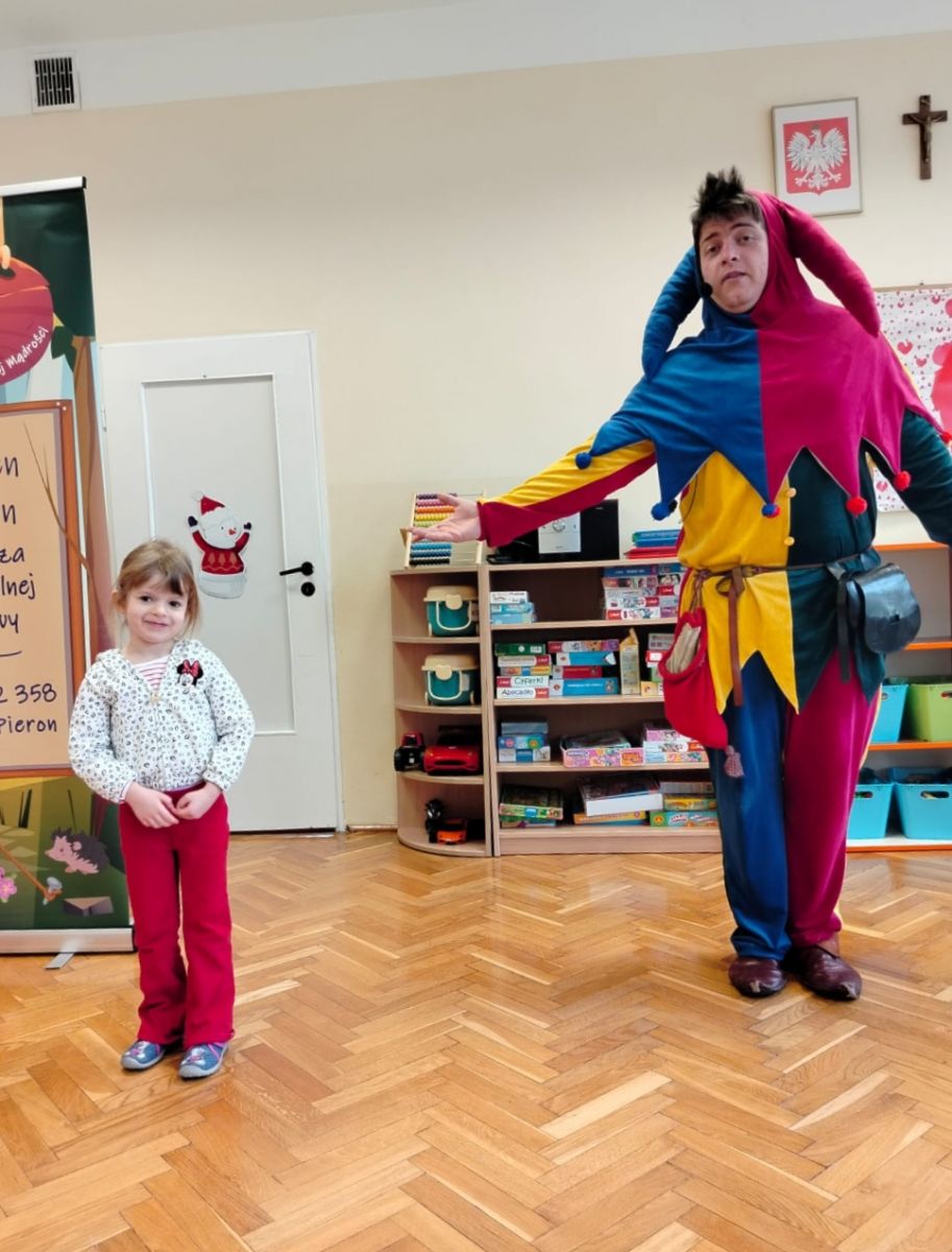 Dzień 23 lutego 2026 roku okazał się „ magicznym” dniem dla Przedszkola Publicznego Nr 1 w Ozimku. Odwiedził nas bowiem Iluzjonista, który zgromadzonych widzów przeniósł we wspaniały świat iluzji, humoru i dobrej rozrywki. Na scenie działy się rzeczy niezwykłe i bardzo zabawne! Sztuczki magiczne zapierały dech w piersiach i wywoływały zachwyt na twarzach przedszkolaków. W magiczny sposób pojawiały się i znikały przedmioty, fruwały kolorowe chustki, lub zmieniały kolory, pojawiały się piłki, metalowe obręcze. Dzieci wypowiadały za czarodziejem magiczne zaklęcia, a wybrani asystenci osobiście brali udział w magicznych sztuczkach. Pokaz wzbudził szczery zachwyt, mała widownia wprost nie mogła usiedzieć na swoich miejscach! Naszego niezwykłego gościa nagrodzono gromkimi brawami!