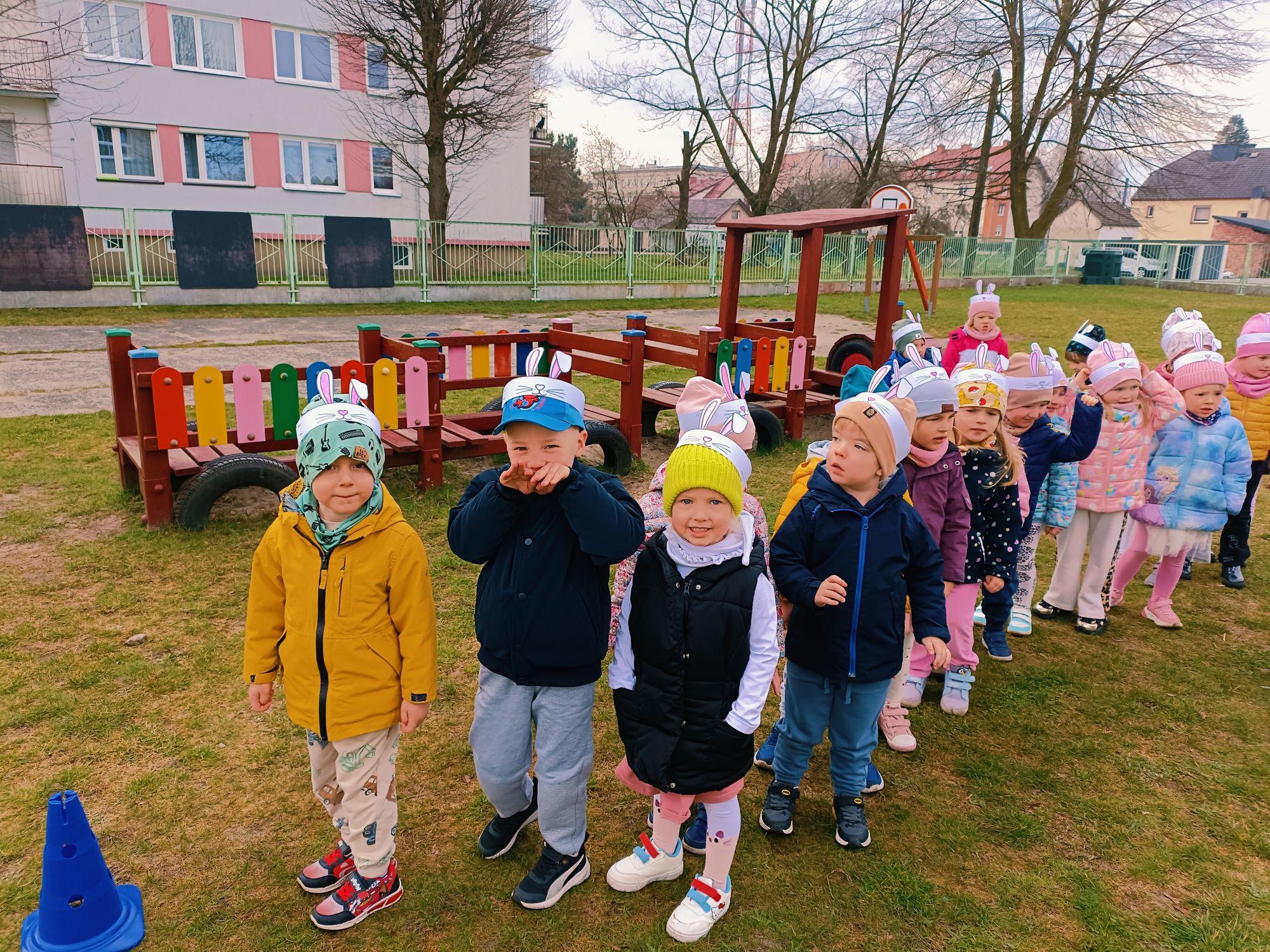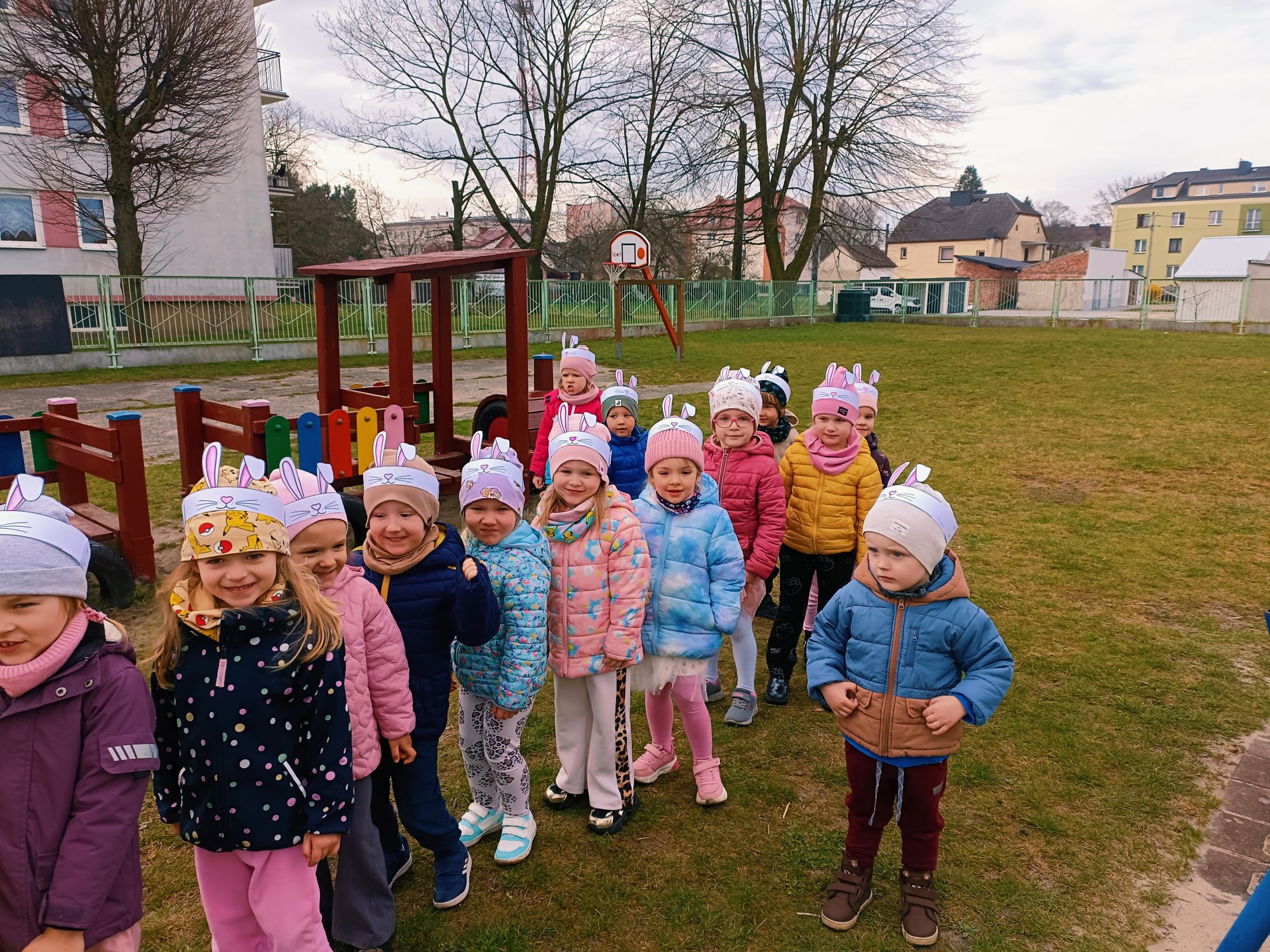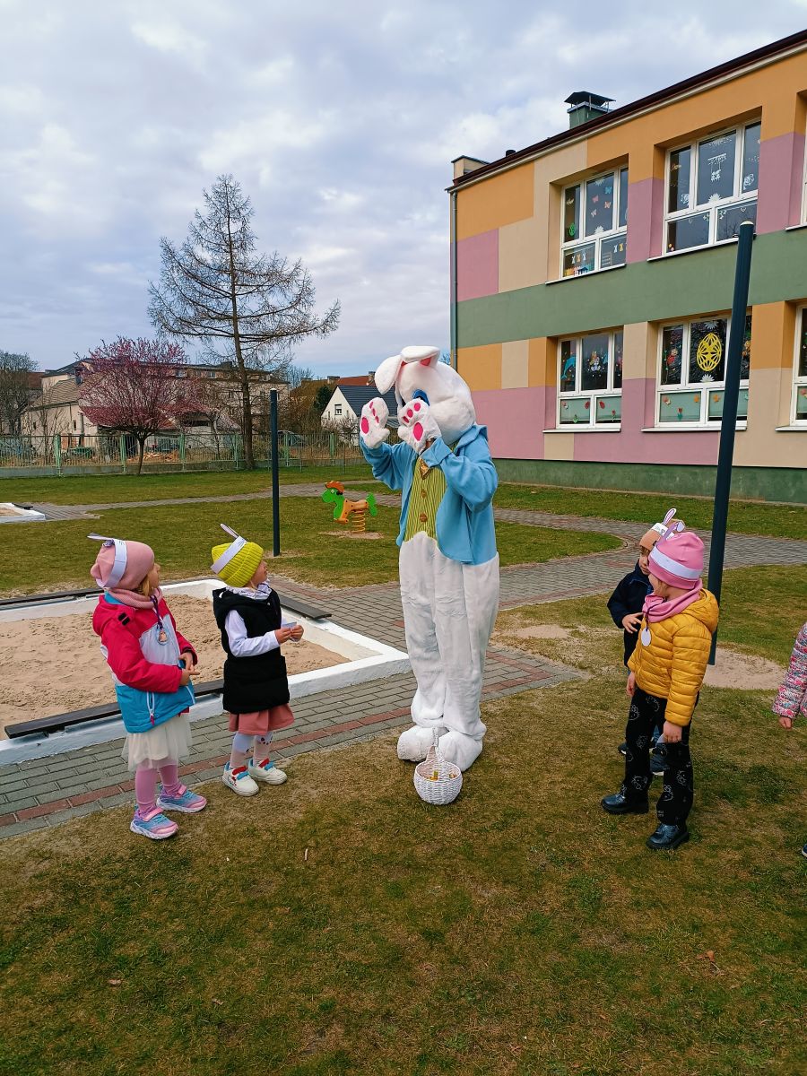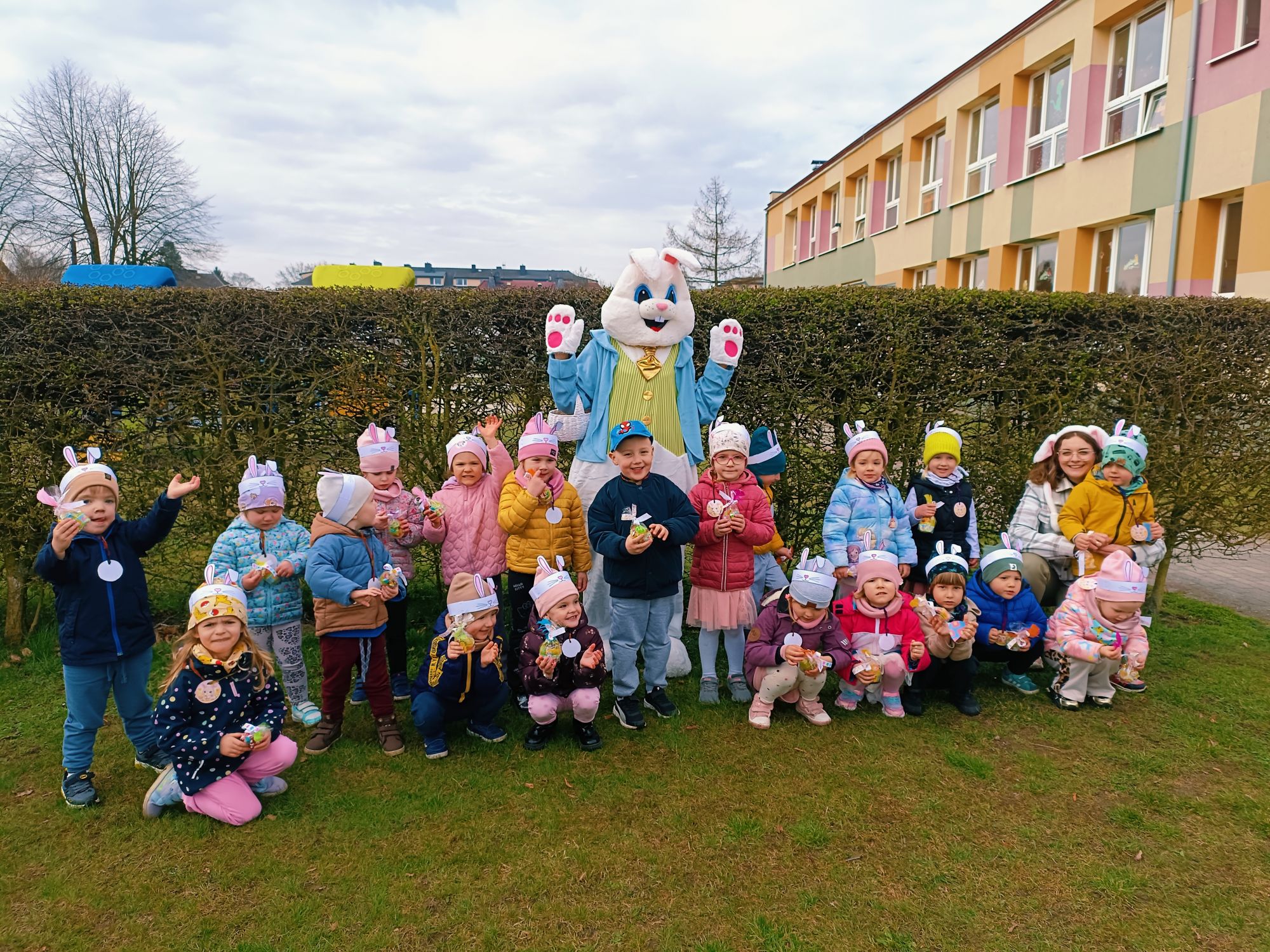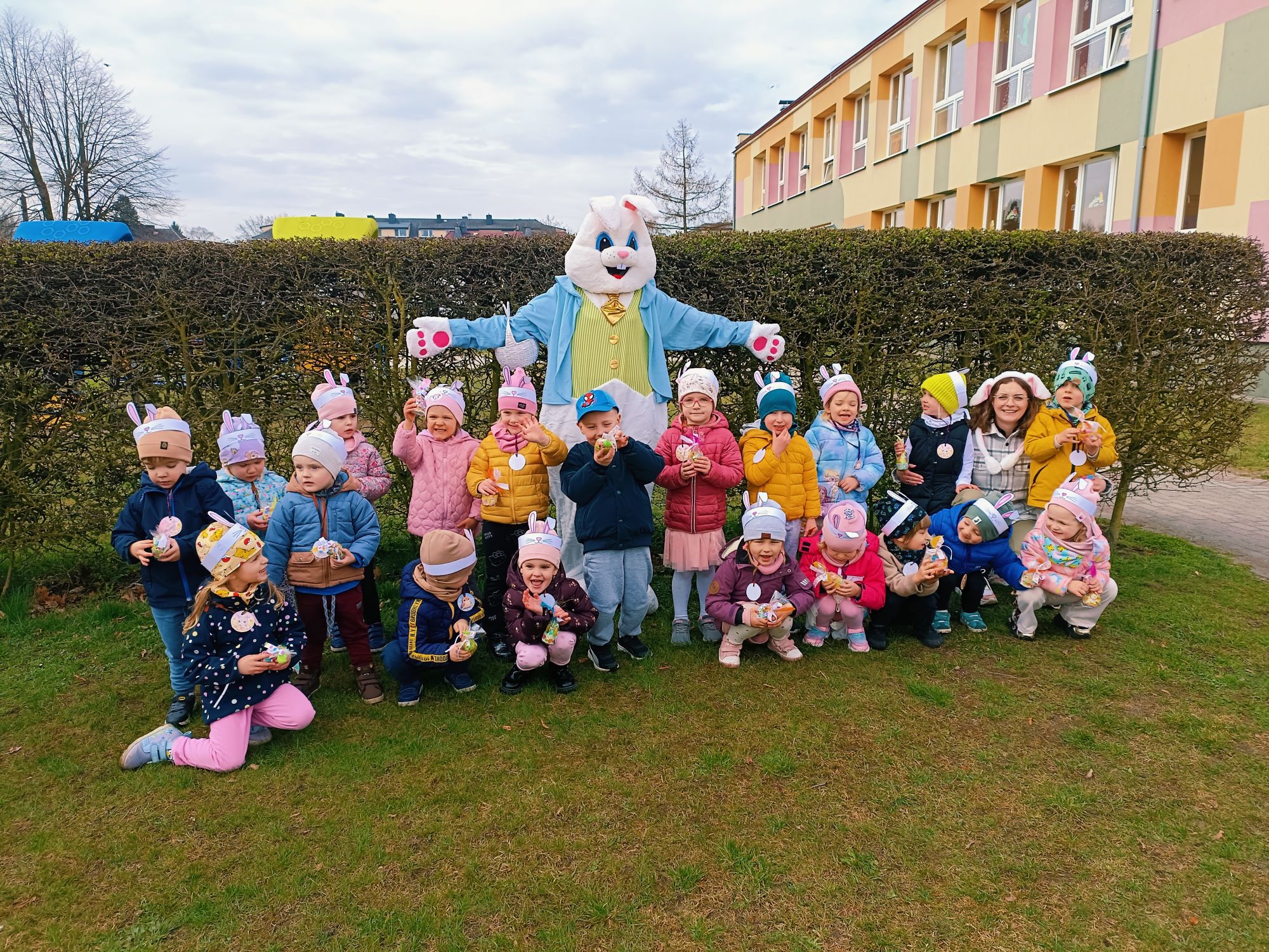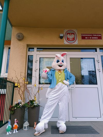 W Wielki Czwartek, 2 kwietnia, w przedszkolnym ogrodzie Przedszkola Publicznego Nr 1 w Ozimku odbyło się radosne wydarzenie – „Szukanie Zajączka”, w którym wzięły udział dzieci z grupy Delfinki. Tego dnia na najmłodszych czekało wiele wesołych aktywności inspirowanych tradycjami wielkanocnymi. Zabawa rozpoczęła się od „skoków zajączka”, podczas których dzieci pokonywały wyznaczoną trasę, naśladując ruchy wiosennego bohatera. Następnie, przy piosence „Cóż to za nowina?”, przedszkolaki wcielały się w różne zwierzątka, rozwijając swoją wyobraźnię i zdolności ruchowe. Dużo radości sprawiło dzieciom szukanie kolorowych jajek ukrytych w ogrodzie. Kolejnym punktem programu było wspólne śpiewanie znanej dzieciom piosenki „Hop Hop Easter Bunny”, która wprowadziła element języka angielskiego do zabawy. Nie zabrakło także zadań integracyjnych – podczas układania wielkanocnych puzzli, dzieci odnajdywały swoje pary, dopasowując połówki pisanek. Wspólny „taniec zajączków” przy muzyce dostarczył wszystkim wiele śmiechu i ruchu. Na zakończenie dzieci udały się na drugi plac zabaw, gdzie czekała na nie niespodzianka – wielkanocne „paczuszki - niespodzianki” ukryte przez zajączka, który pojawił się w Jedyneczce we własnej osobie. Był to wyjątkowy dzień pełen radości, współpracy i świątecznej atmosfery.