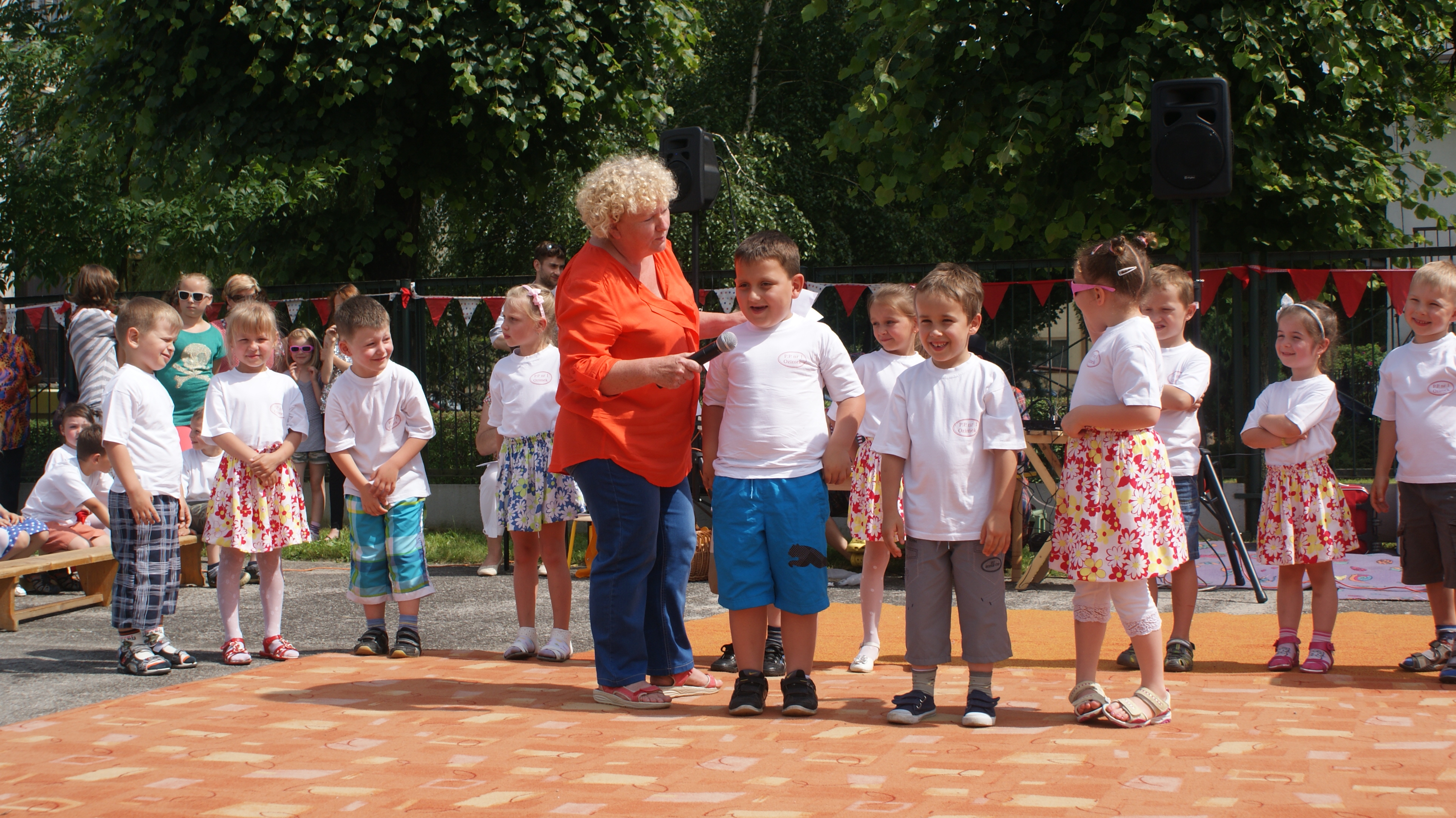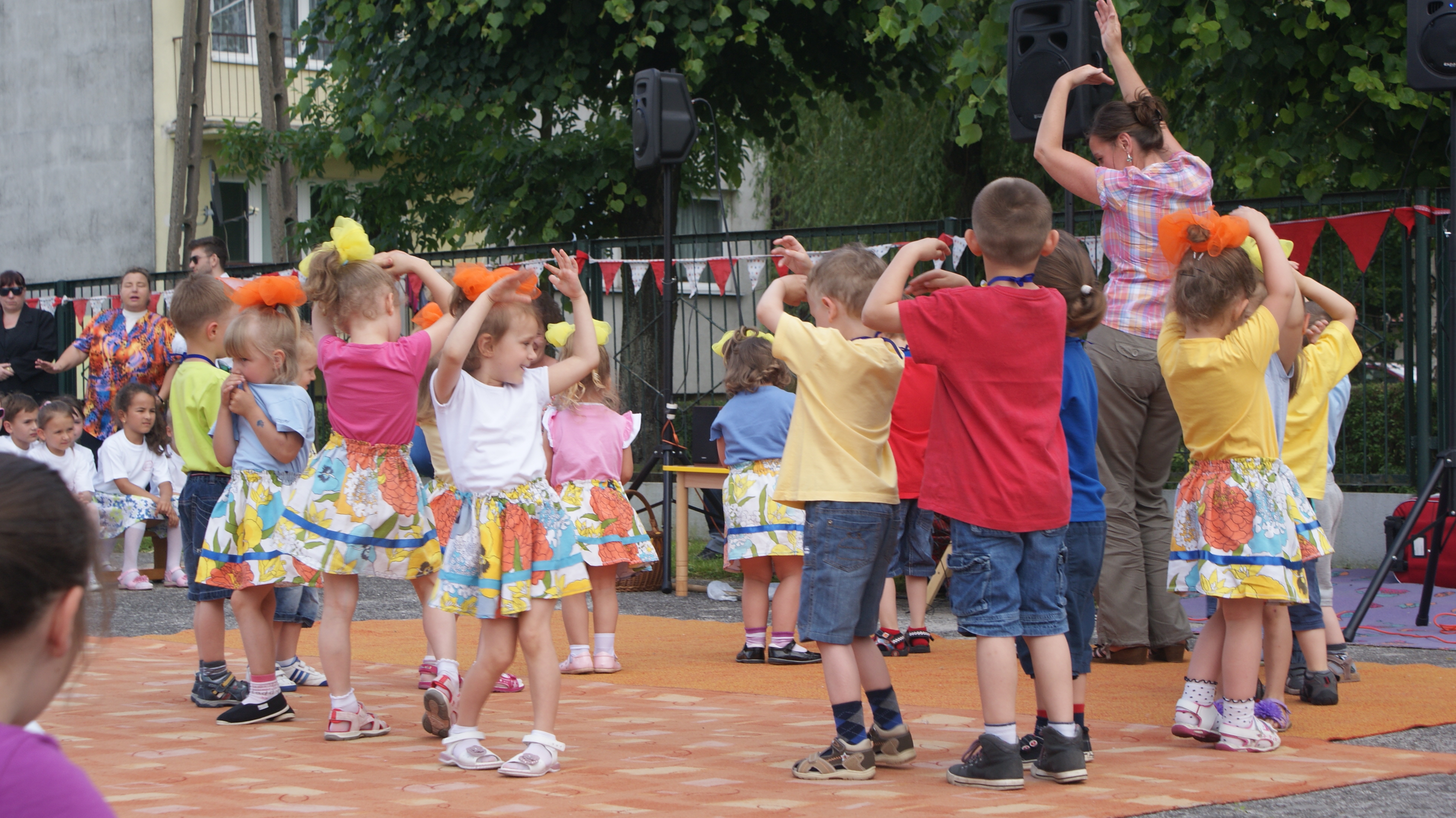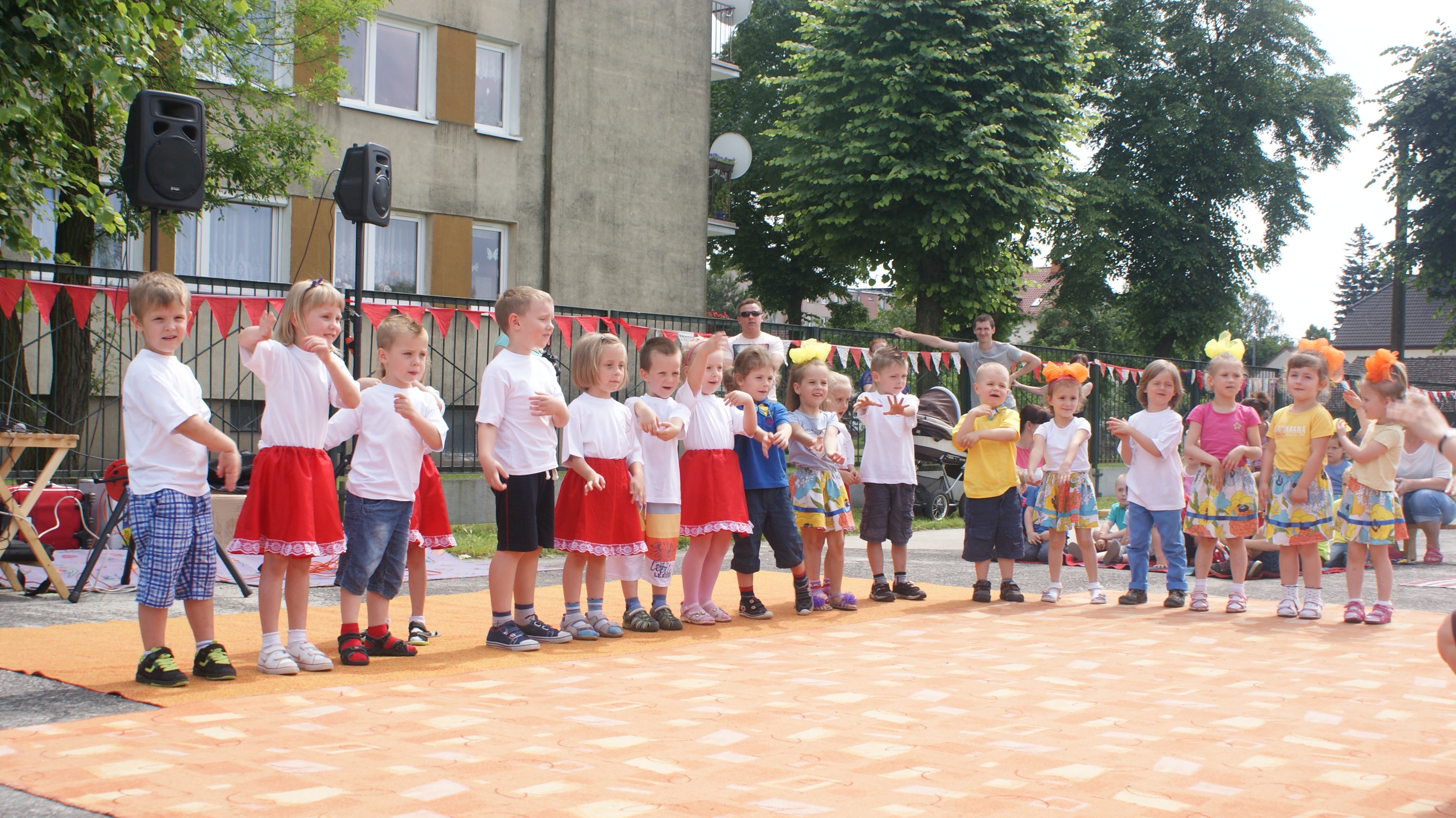 Na scenie zaprezentowały się przedszkolaki z wszystkich grup wiekowych z programem artystycznym dedykowanym swoim rodziców. W programie festynu pojawiły się piosenki, wiersze, tańce oraz życzenia. Ponadto dzieci zaprezentowały swoje umiejętności taneczne i językowe, które nabyły dzięki nauczycielom tańca i j. niemieckiego.