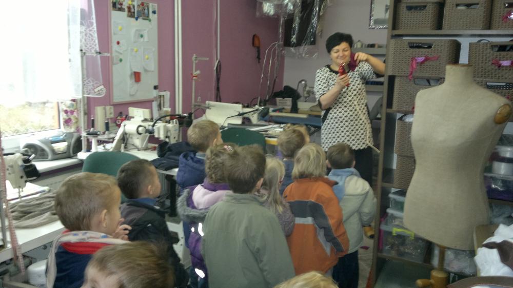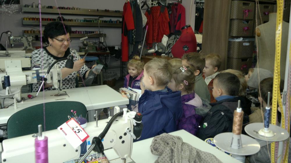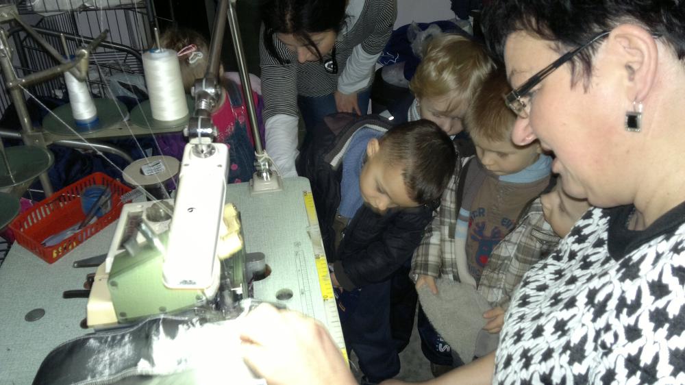 Maluszki z grupy I cały ubiegły tydzień poznawały na zajęciach tajniki zawodu krawieckiego. W piątkowe, słoneczne przedpołudnie 07 marca, w ramach poszerzenia i uzupełnienia wiadomości (oraz zaspokojenia dziecięcej ciekawości) wybrały się z wizytą do zakładu krawieckiego. Właścicielka zakładu, Pani Jadwiga Pęcherz, bardzo ciepło przyjęła przedszkolaków. Krok po kroku zapoznawała dzieci z warsztatem pracy krawcowej. Pokazała tkaniny, nici, elektryczne nożyce, żelazko parowe, różne rodzaje maszyn, manekiny oraz gotowe, uszyte przez siebie stroje. Wytłumaczyła do czego służą poszczególne przedmioty i urządzenia. Dzieci słuchały z zainteresowaniem, zadawały pytania jednak najbardziej podobał im się pokaz szycia na maszynie. Chętne maluchy poddały się fachowemu zdjęciu miary przez krawcową. Spotkanie było bardzo ciekawe, przedszkolaki uśmiechnięte i pełne nowych doświadczeń wróciły do przedszkola.