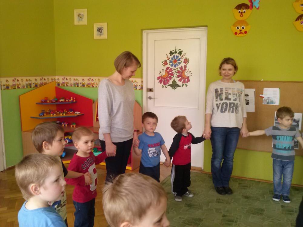 Jak wiadomo, żadne zajęcia ruchowe nie odbywają się bez przygotowania, przedszkolaki zaczęły więc od rozgrzewki. Rodzice chętnie dołączyli do swoich pociech. Następnie uczestnicy inspirowani piosenką o kotku uruchomili wyobraźnię i zilustrowali ją ruchem: skradali się cichutko, wspinali wysoko, myli uszka, kręcili ogonkami i bawili kłębuszkiem wełny leżąc na plecach. Podczas piosenki o misiach była okazja nie tylko do tańca ale i do przytulania. Nie zabrakło także utworu z dziecięcej klasyki i elementów baletu. Przedszkolaki bawiły się wspaniale a rodzicie dzielnie starali się dotrzymać im kroku.