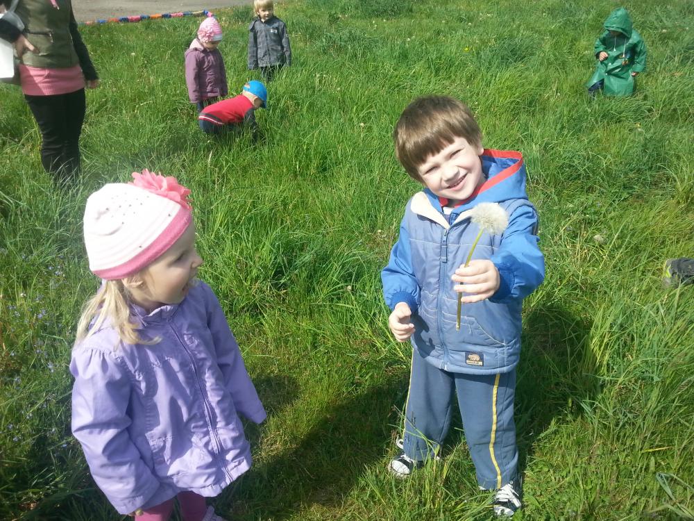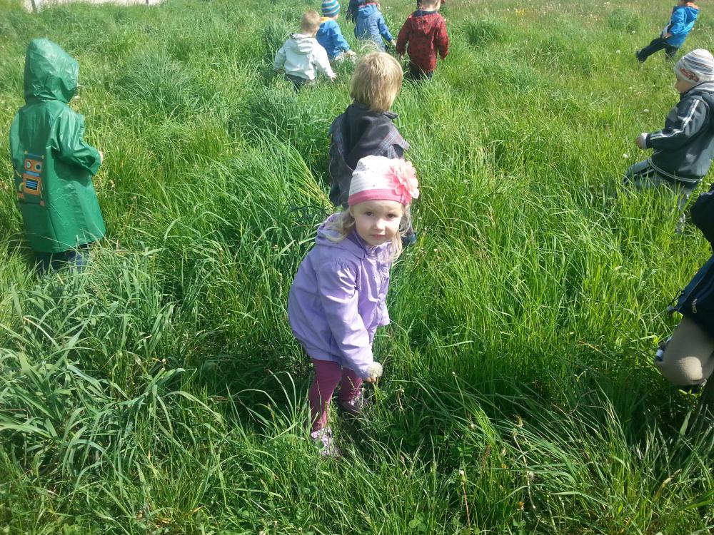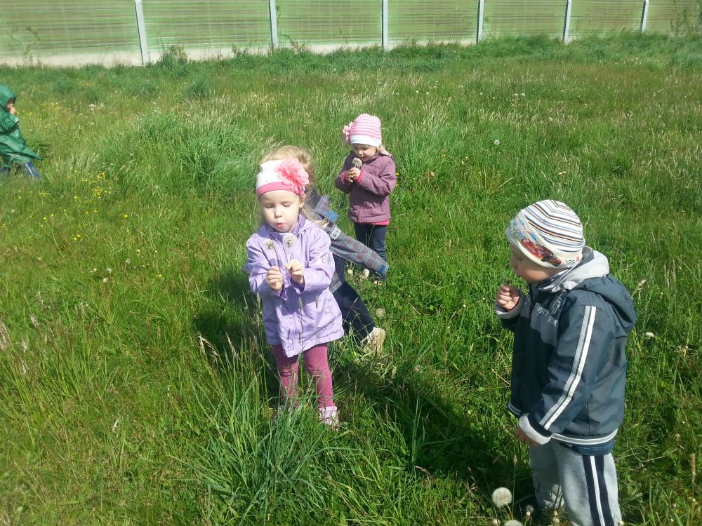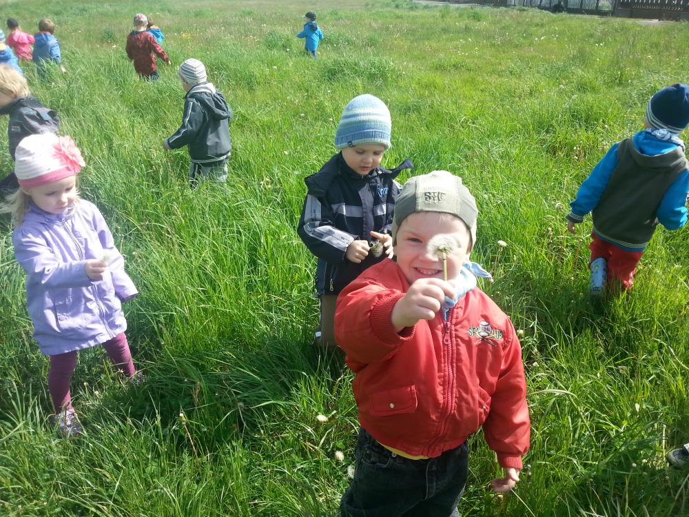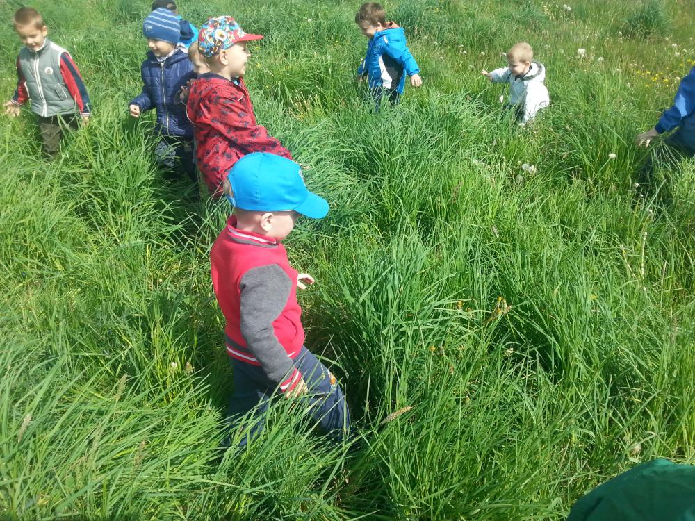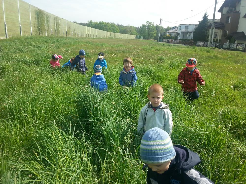 07 maja grupa I korzystając z pięknej pogody wybrała się na pieszą wycieczkę, na pobliską łąkę. Wyprawa ta była wspaniałym podsumowaniem omawianego tematu. Dzieci z wielkim zapłem ruszyły na poszukiwania mieszkańców łąki, których poznały na zdjęciach, o których śpiewały piosenki i recytowały wierszyki. Pszczółki, biedronki i motylki doskonale ukryły się w wysokich trawach. Udało nam się jedynie dostrzec je podczas lotu. Dużo radości sprawiło nam dmuchanie dmuchawców oraz oglądanie innych przepięknych, polnych kwiatków. Jeszcze długo po powrocie do przedszkola rozmawialiśmy o pięknej, majowej łące.