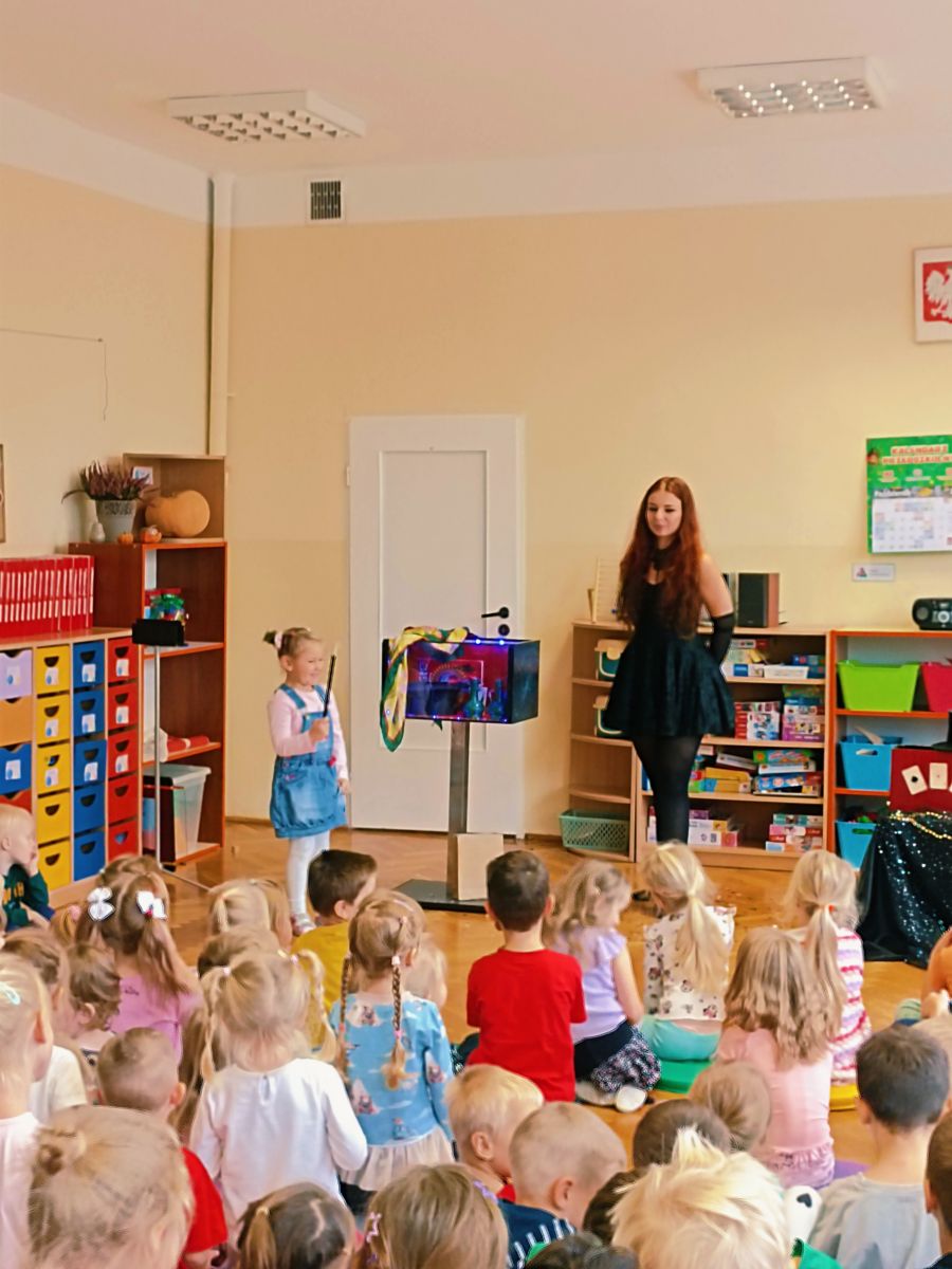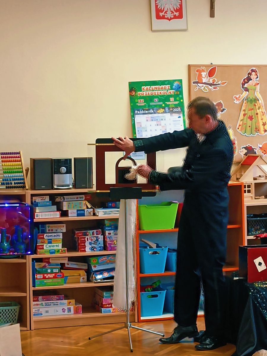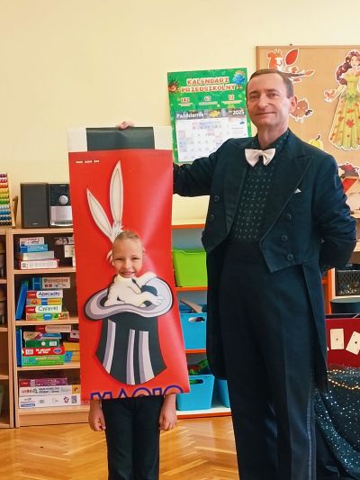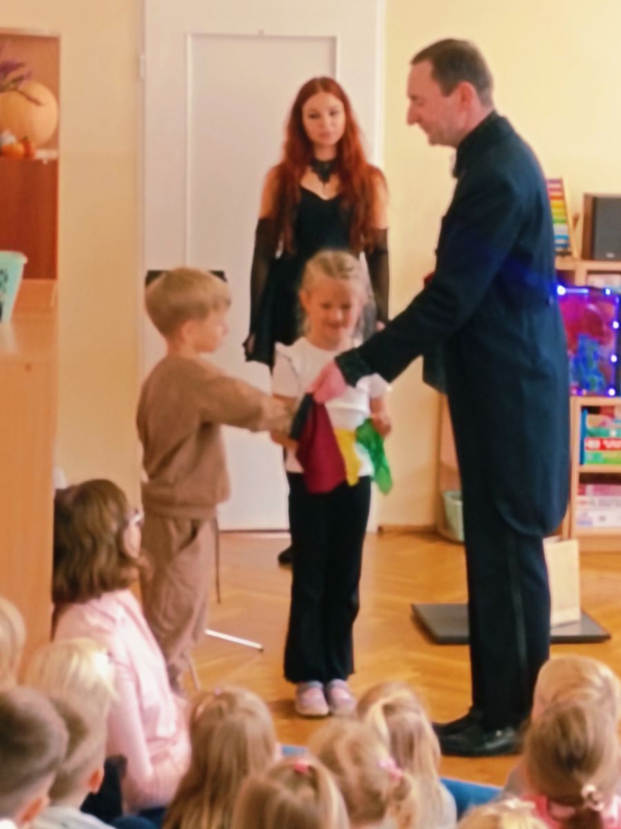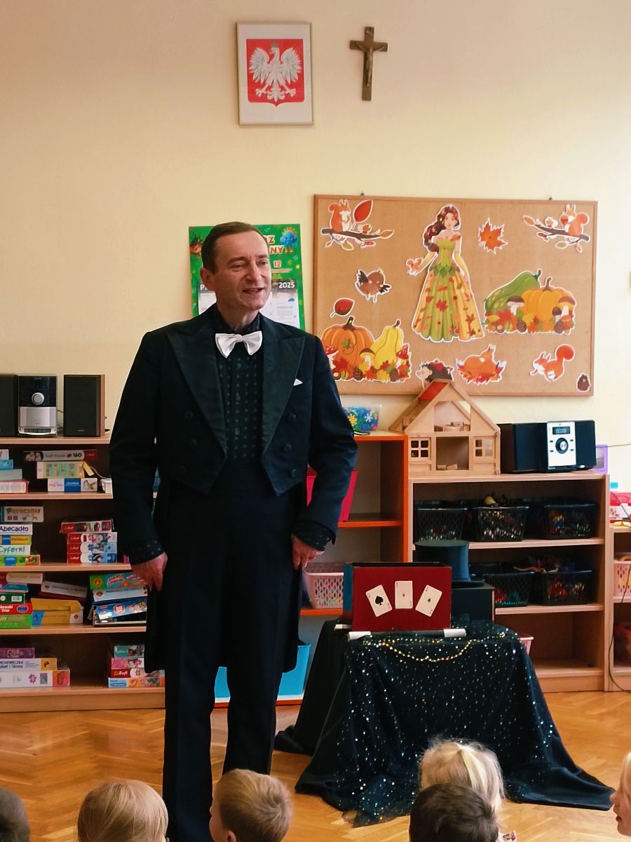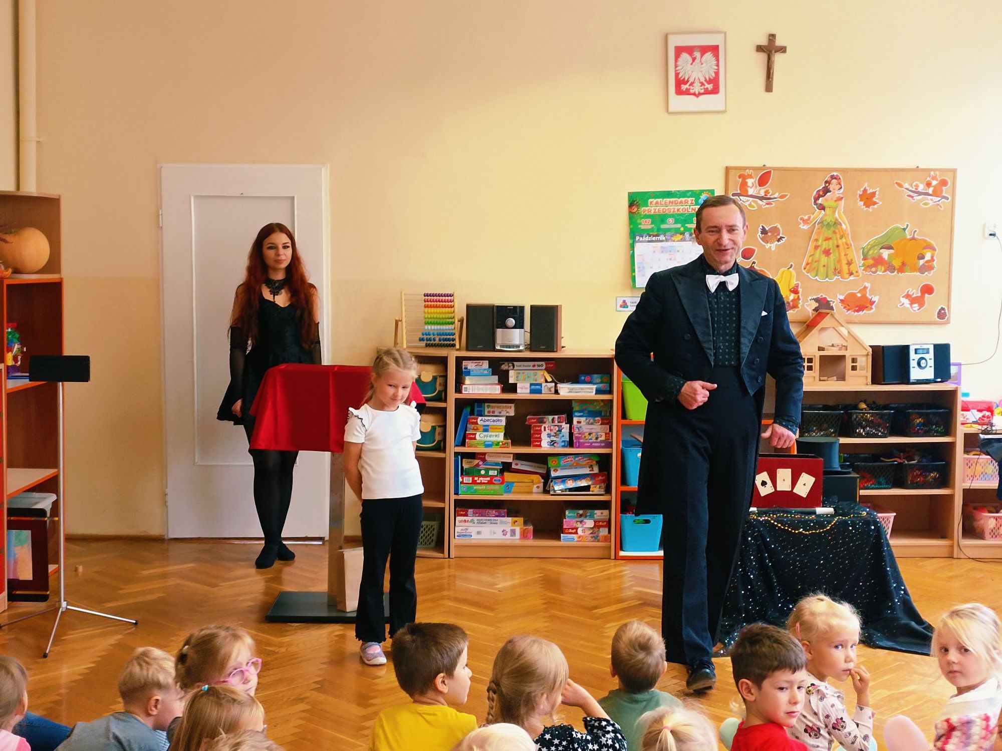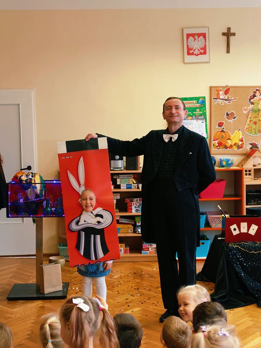 10 października 2025r. Przedszkole Publiczne Nr 1 w Ozimku odwiedził iluzjonista Marcin Klęk wraz ze swoją asystentką, który zabrał dzieci w swoją magiczną podróż. Pokaz iluzji wzbudził w dzieciach ciekawość, uruchomił wyobraźnię i fascynował je. Przebiegał w taki sposób, by jego uczestnicy nie byli tylko biernymi obserwatorami, ale również brali czynny udział w prezentowaniu trików. Odwiedziny prawdziwego magika to bez wątpienia wielka atrakcja dla naszych przedszkolaków!