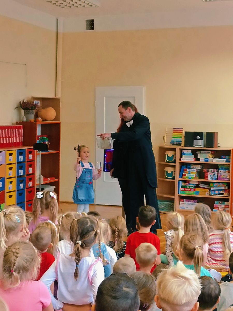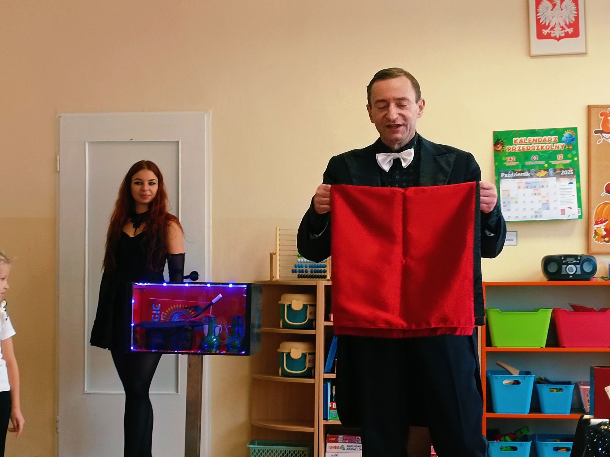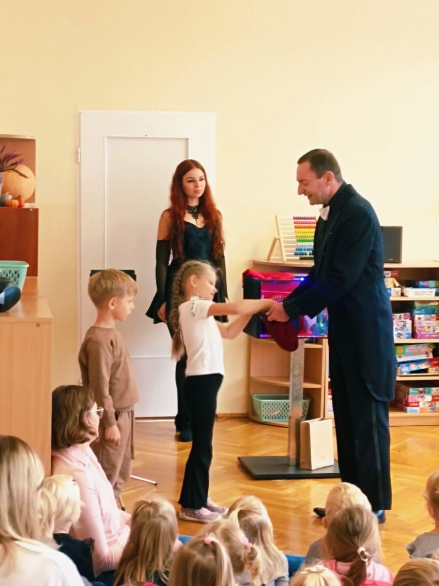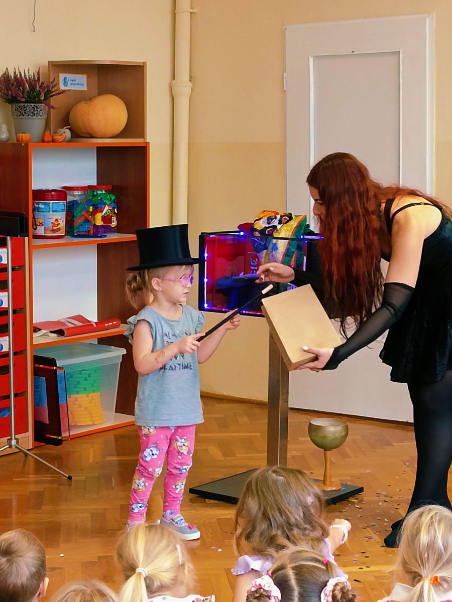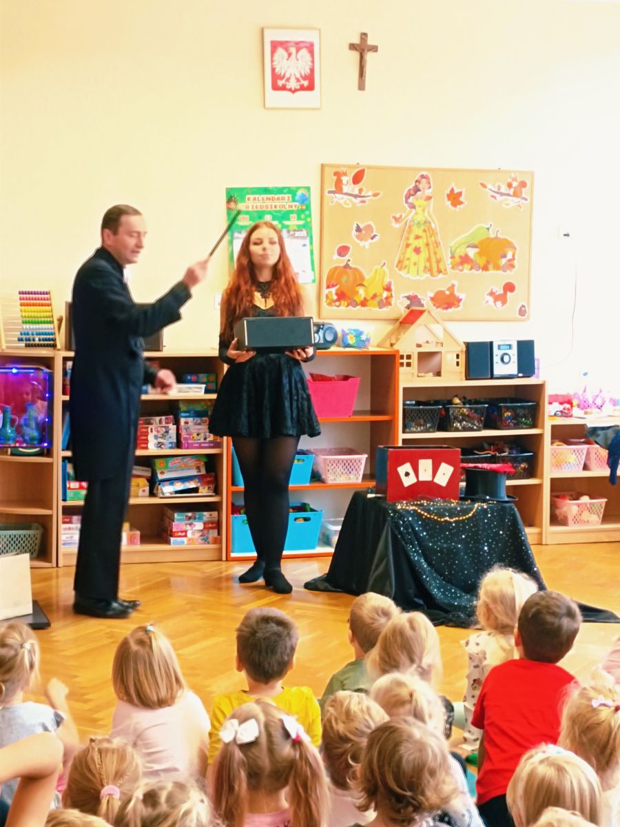 10 października 2025r. Przedszkole Publiczne Nr 1 w Ozimku odwiedził iluzjonista Marcin Klęk wraz ze swoją asystentką, który zabrał dzieci w swoją magiczną podróż. Pokaz iluzji wzbudził w dzieciach ciekawość, uruchomił wyobraźnię i fascynował je. Przebiegał w taki sposób, by jego uczestnicy nie byli tylko biernymi obserwatorami, ale również brali czynny udział w prezentowaniu trików. Odwiedziny prawdziwego magika to bez wątpienia wielka atrakcja dla naszych przedszkolaków!
