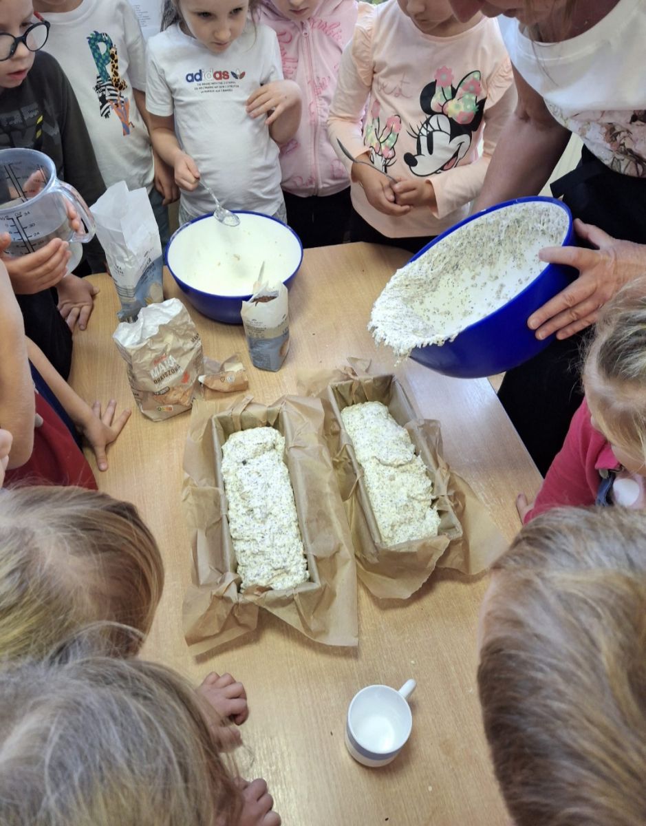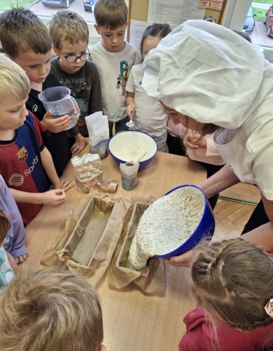 16 października w Przedszkolu Publicznym nr 1 w Ozimku w grupie Jagódek odbył się Światowy Dzień Chleba .Dzieci dowiedziały się jak powstaje mąka i jak powstaje chleb. Poznały rodzaje pieczywa oraz jakie składniki potrzebne są do jego wypieku. Przedszkolaki uświadomiły sobie, że proces powstawania chleba jest wynikiem pracy wielu ludzi, ważne są proporcje i dobór składników, a nasiona dodają koloru i smaku. Tego dnia nasi najmłodsi mieli okazję do samodzielnego ugniatania i formowania ciasta. Przedszkolaki uformowały z masy chleb orkiszowy z ziarnami. Zapach pieczonego chleba w naszej przedszkolnej kuchni – roznosił się po całym przedszkolu, jak w prawdziwej piekarni. Ciepły chlebek z masełkiem smakował wyśmienicie.