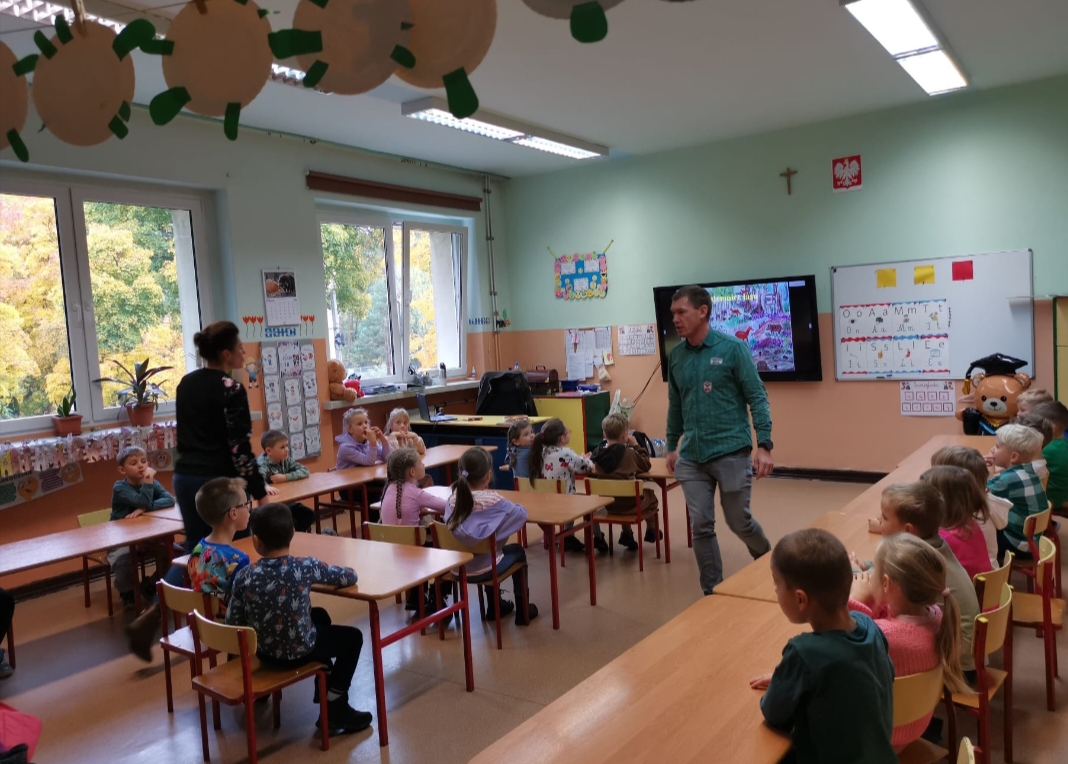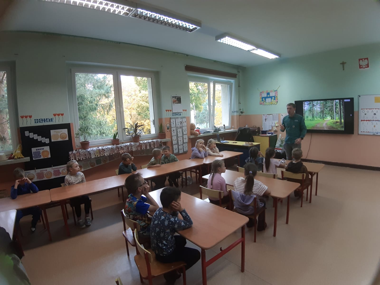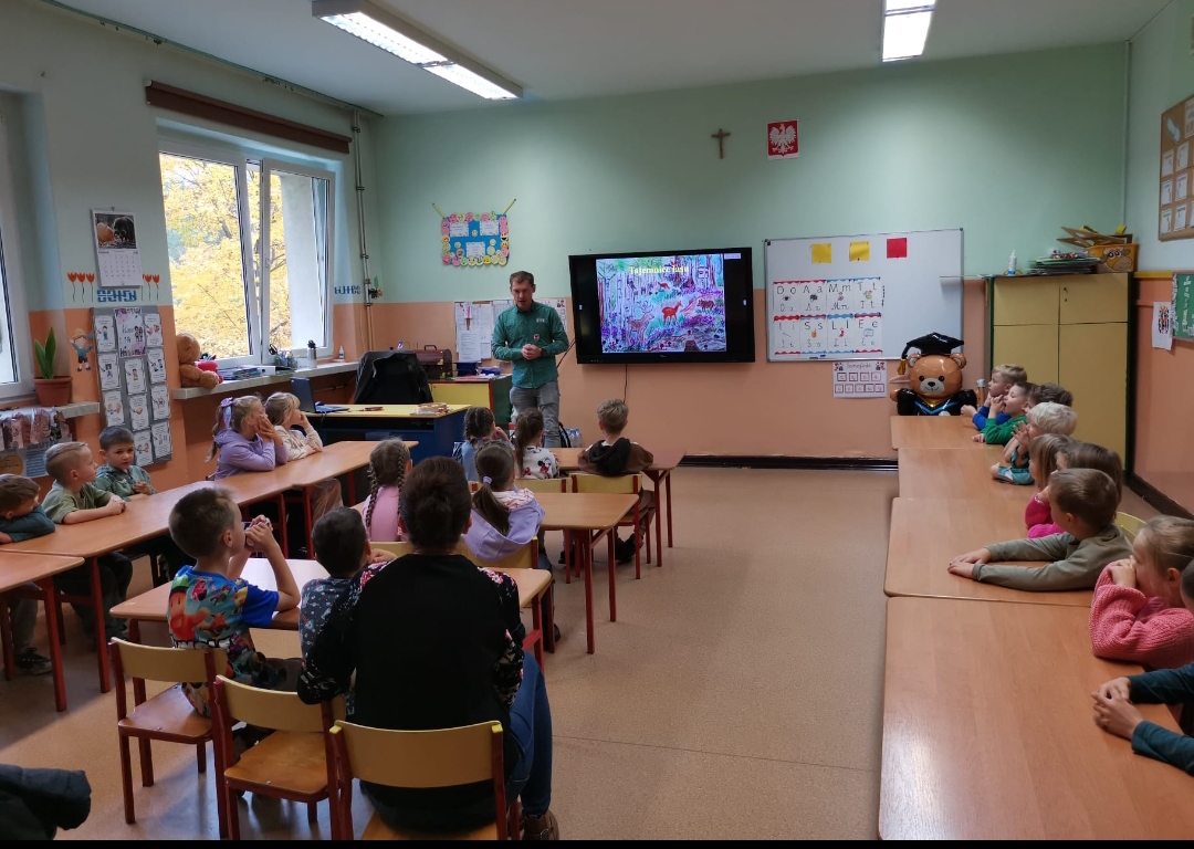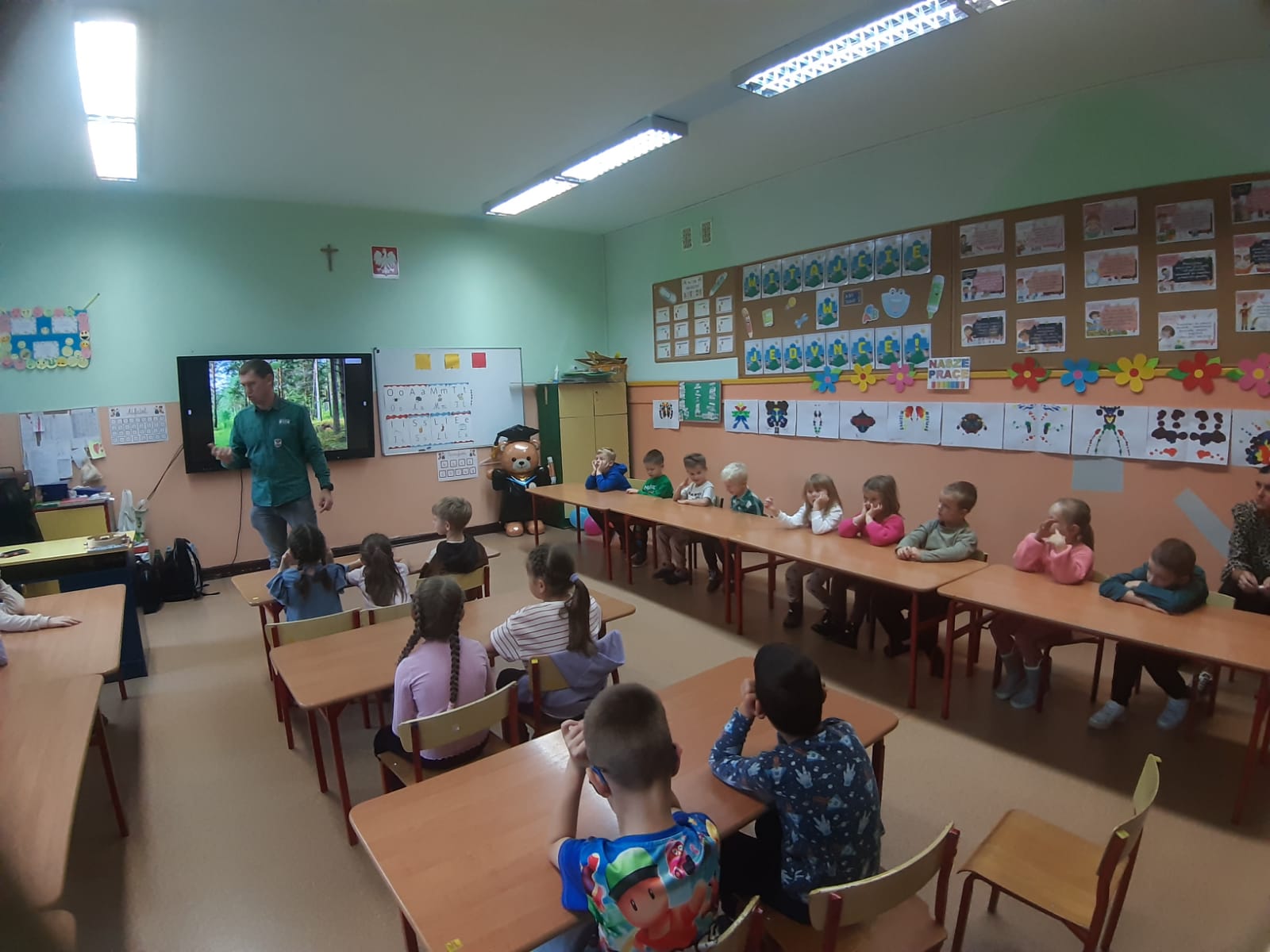16 października 2025r. grupa Witaminki z Przedszkola Publicznego Nr 1 w Ozimku miała okazję przeżyć niesamowitą przygodę, odwiedzając Publiczną Szkołę Podstawową Nr 1 w Ozimku.Celem wyjątkowej wycieczki było uczestnictwo w specjalnie przygotowanych zajęciach na temat tajemnic lasu , których prowadzącym był Pan Marek Kaziak , nauczyciel pracujący w tej szkole. Dzieci z ogromnym zainteresowaniem i ciekawością,wzięły udział w zajęciach , które pozwoliły im poznać las od podszewki .Dzieci rozpoznawały gatunki drzew ,dowiedziały się co kryje się w leśnej ściółce, wysłuchały odgłosy lasu, rozpoznawając śpiew ptaków i odgłosy innych zwierząt, co wywołało u nich ogromne emocje i radość. Spotkanie w szkole było nie tylko lekcją przyrody ,ale ważnym wydarzeniem integracyjnym. Przedszkolaki miały okazję zobaczyć jak wygląda szkolne życie ich starszych kolegów i koleżanek. Podczas przerwy ma korytarzu wielu z nich spotkało dzieci, które kiedyś uczęszczały do naszego przedszkola. Wyjście do szkoły i udział w zajęciach ,,Tajemnice lasu” okazało się wielkim sukcesem. Przedszkolaki poszerzyły swoją wiedzę na temat przyrody, wzbogaciły słownictwo i ukształtowały świadomość ekologiczną, ucząc się jak ważne jest dbanie o czyste środowisko. Był to kolejny krok w ich przygotowaniu do roli przyszłych uczniów,który z pewnością złagodzi obawy przed nowym etapem edukacji.Serdecznie dziękujemy dyrekcji i panu Markowi za gościnność i przygotowanie wspaniałych zajęć. Już nie możemy doczekać się kolejnych wspólnych przygód!