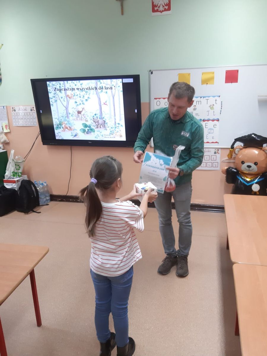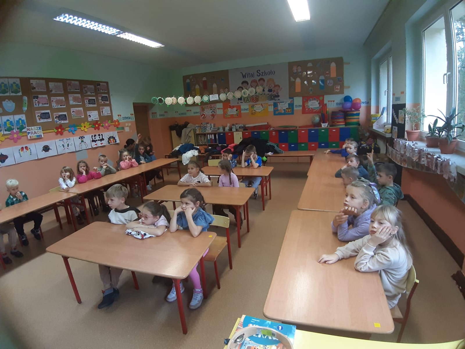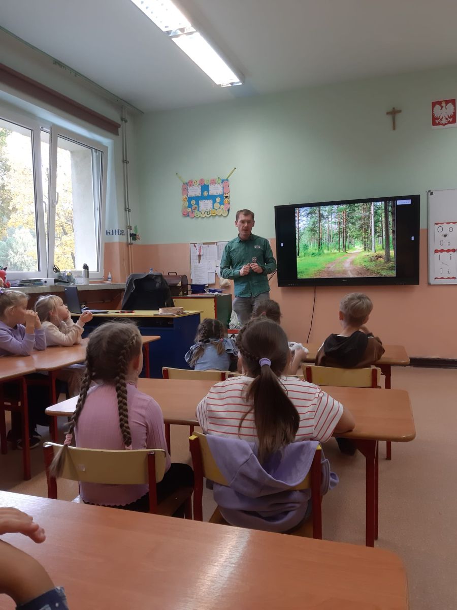 16 października 2025r. grupa Witaminki z Przedszkola Publicznego Nr 1 w Ozimku miała okazję przeżyć niesamowitą przygodę, odwiedzając Publiczną Szkołę Podstawową Nr 1 w Ozimku.Celem wyjątkowej wycieczki było uczestnictwo w specjalnie przygotowanych zajęciach na temat tajemnic lasu , których prowadzącym był Pan Marek Kaziak , nauczyciel pracujący w tej szkole. Dzieci z ogromnym zainteresowaniem i ciekawością,wzięły udział w zajęciach , które pozwoliły im poznać las od podszewki .Dzieci rozpoznawały gatunki drzew ,dowiedziały się co kryje się w leśnej ściółce, wysłuchały odgłosy lasu, rozpoznawając śpiew ptaków i odgłosy innych zwierząt, co wywołało u nich ogromne emocje i radość. Spotkanie w szkole było nie tylko lekcją przyrody ,ale ważnym wydarzeniem integracyjnym. Przedszkolaki miały okazję zobaczyć jak wygląda szkolne życie ich starszych kolegów i koleżanek. Podczas przerwy ma korytarzu wielu z nich spotkało dzieci, które kiedyś uczęszczały do naszego przedszkola. Wyjście do szkoły i udział w zajęciach ,,Tajemnice lasu” okazało się wielkim sukcesem. Przedszkolaki poszerzyły swoją wiedzę na temat przyrody, wzbogaciły słownictwo i ukształtowały świadomość ekologiczną, ucząc się jak ważne jest dbanie o czyste środowisko. Był to kolejny krok w ich przygotowaniu do roli przyszłych uczniów,który z pewnością złagodzi obawy przed nowym etapem edukacji.Serdecznie dziękujemy dyrekcji i panu Markowi za gościnność i przygotowanie wspaniałych zajęć. Już nie możemy doczekać się kolejnych wspólnych przygód!