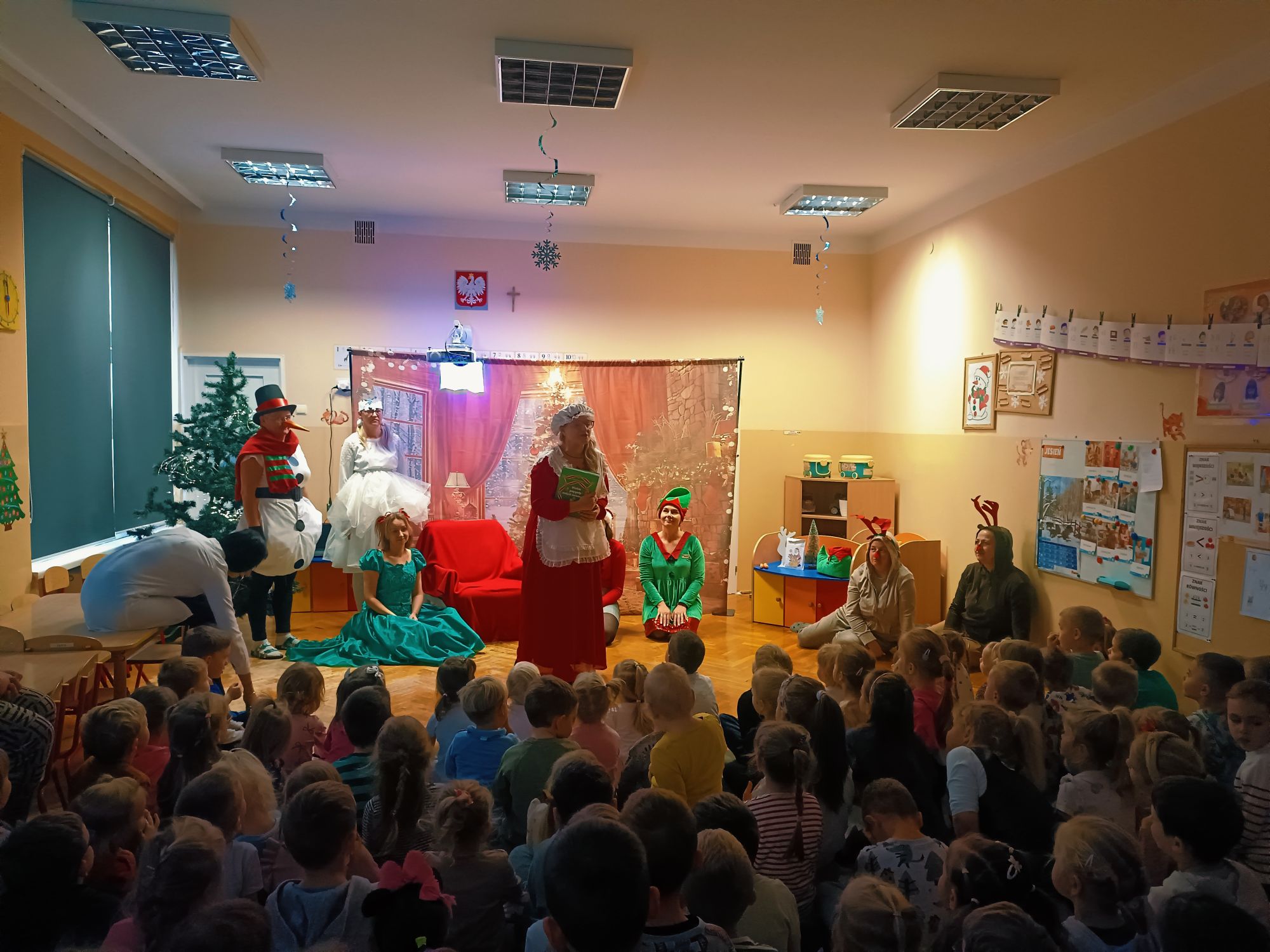 W oczekiwaniu na Mikołaja , 4 grudnia 2025r.w Przedszkolu Publicznym Nr 1 w Ozimku artyści - pracownicy przedszkola nauczyciele , personel i niezawodna ekipa kuchni przedszkola stworzyli dla dzieci niesamowitą inscenizację „W chatce Świętego Mikołaja”. Pani Mikołajowa, elfy, bałwan ,śnieżynka oraz renifery zabrały dzieci w magiczną podróż połączoną z interaktywnym pokazem filmowym. Całą inscenizację podkreśliła piosenka w wykonaniu aktorów „Kochany panie Mikołaju”.Dzieci były zachwycone niespodzianką. Na twarzach dzieci malowała się wielka radość i przejęcie, a nawet niedowierzanie. Było dużo śmiechu ,ale także łzy wzruszenia. Aktorzy otrzymali gromkie brawa. Już nie możemy doczekać się spotkania z Mikołajem…