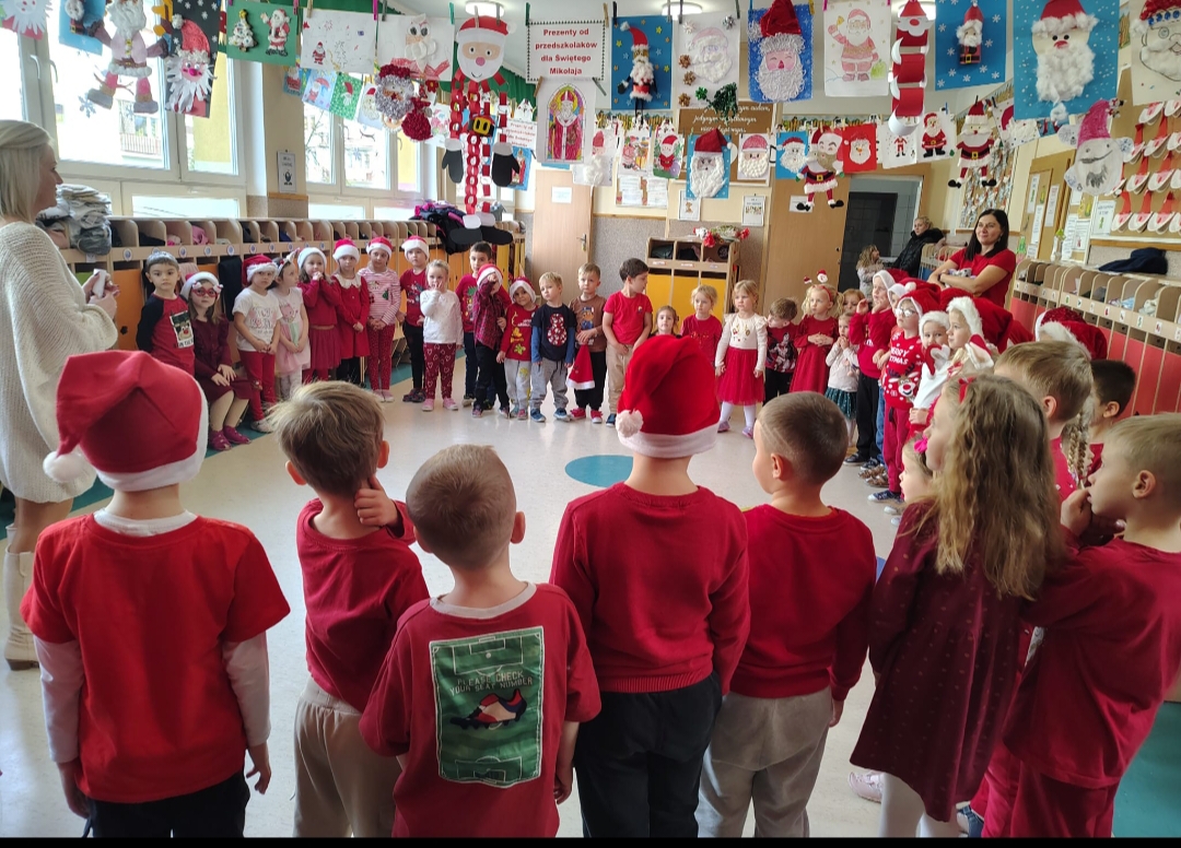 Grudzień to miesiąc dobroci dla innych. Mikołaj od dnia swoich imienin rozdaje dzieciom prezenty. Przedszkolaki z Przedszkola Publicznego Nr 1 w Ozimku tez pomyślały o prezentach dla Św. Mikołaja i wykonały je w pracach plastycznych pt.„Portret Św. Mikołaja” .Zaproszenie do udziału w akcji plastycznej spotkało się z ogromnym zainteresowaniem dzieci. Wpłynęło wiele prac  wykonanych różnymi technikami. Każda z nich odzwierciedlała wyobrażenia o niezwykłym gościu, który odwiedza dziecięce domy i przedszkola tylko raz w roku. Przedszkolnym artystom nie zabrakło wyobraźnie, fantazji, odwagi, śmiałości i pomysłowości. Każdy przedszkolak został nagrodzony słodkim upominkiem ,a prace stworzyły niepowtarzalną wystawę oraz dekorację świąteczną naszego przedszkola.