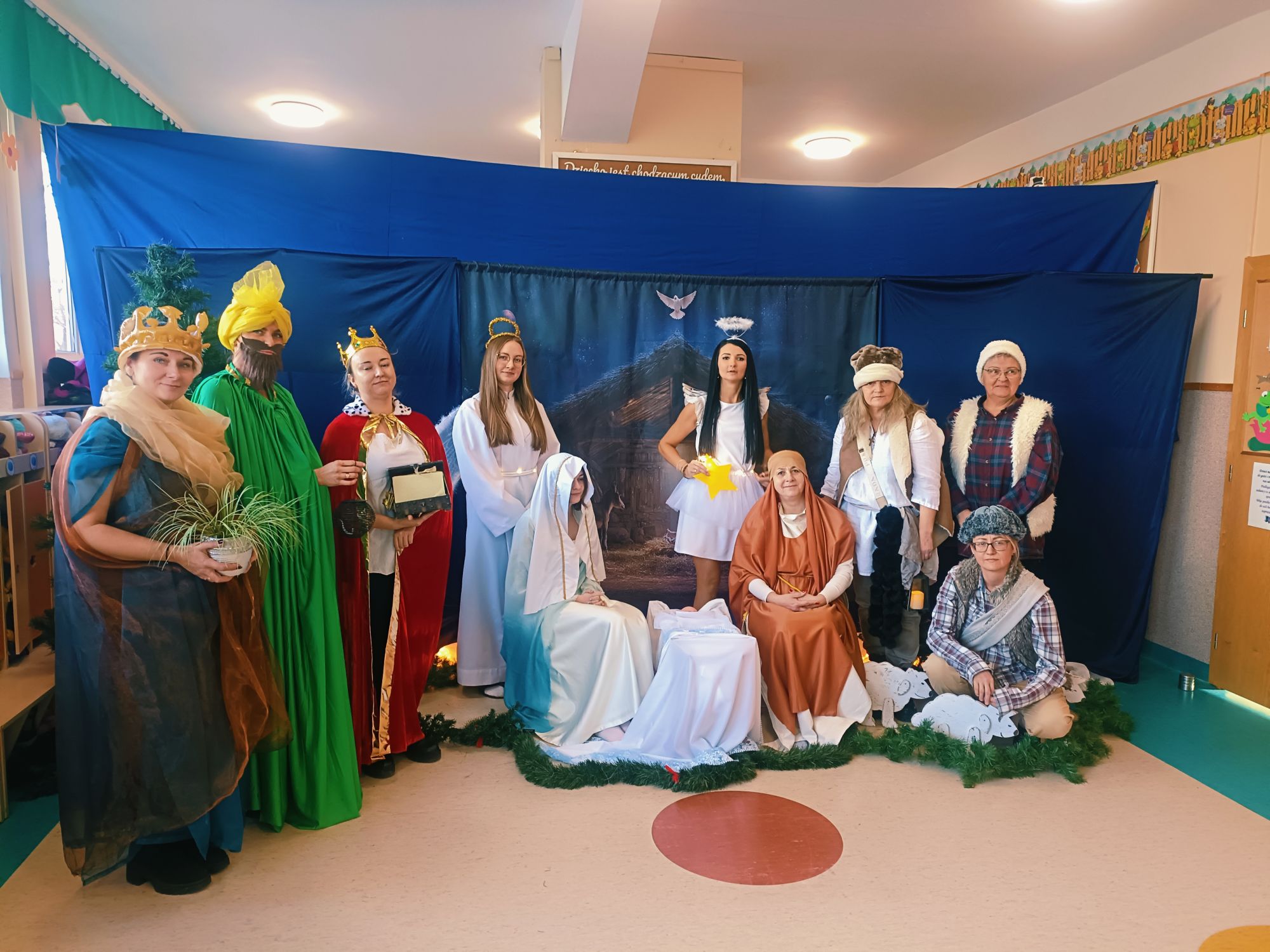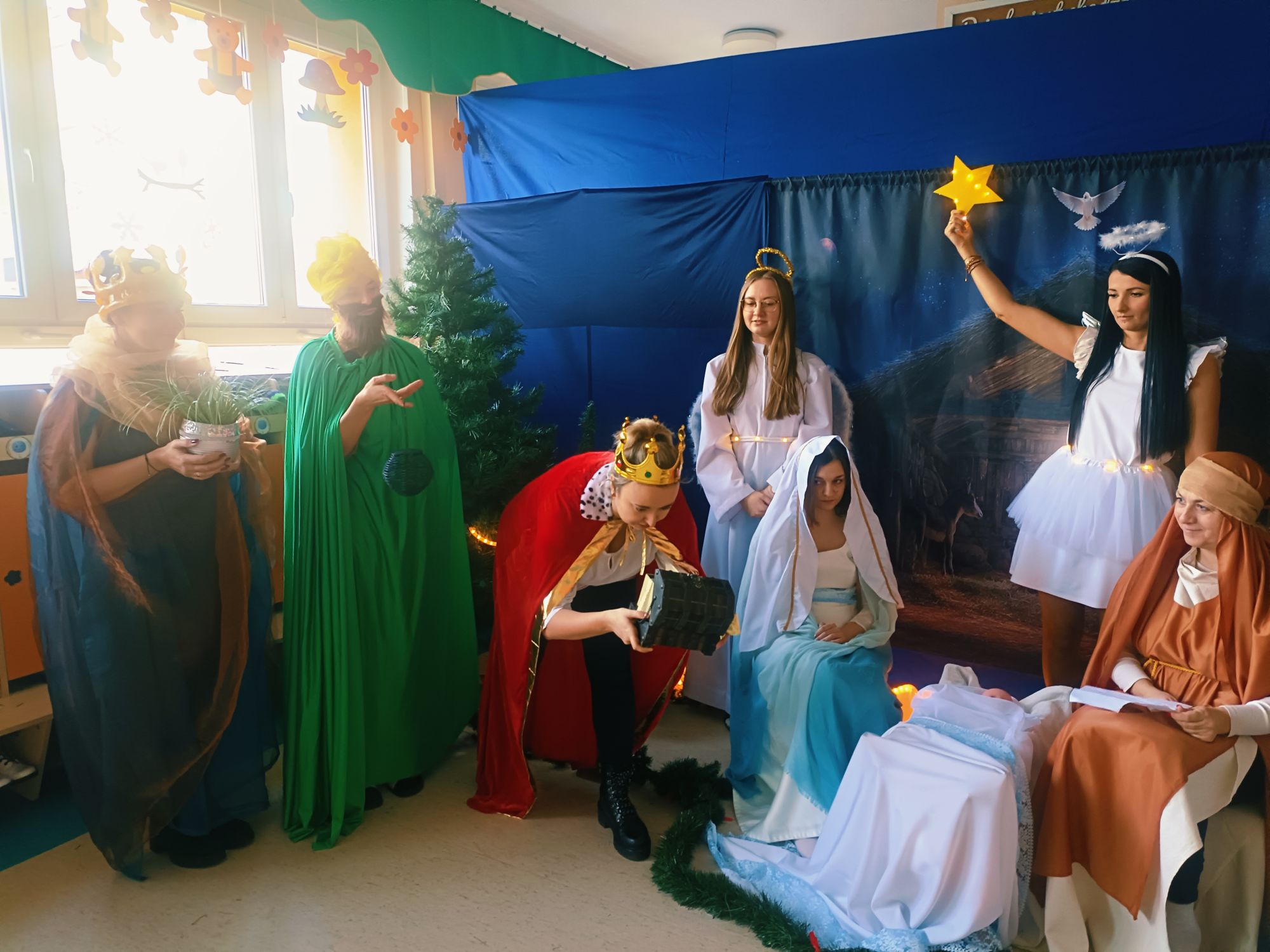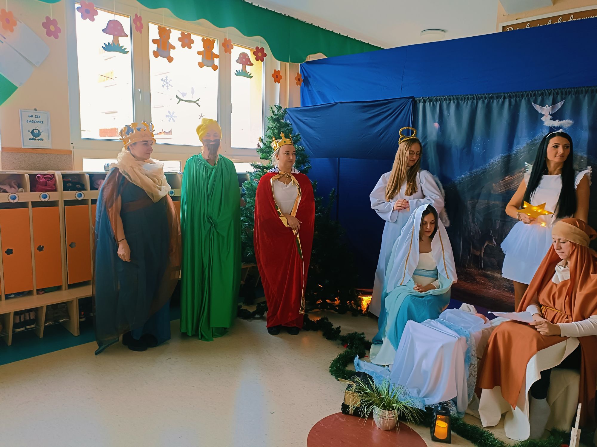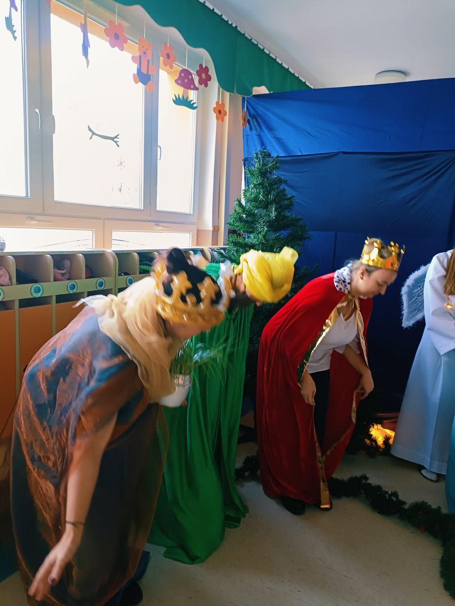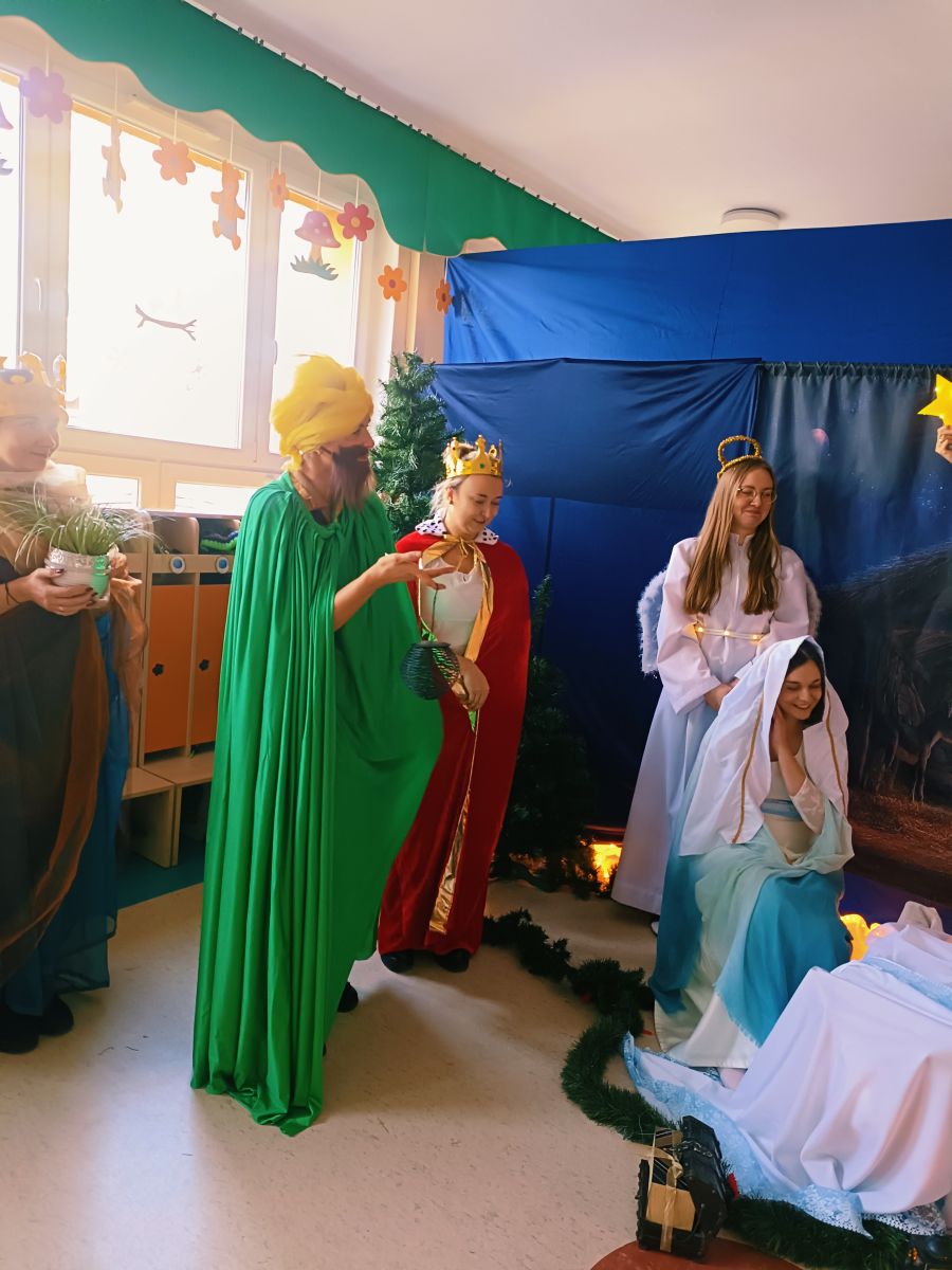 17 grudnia 2025r. „Magiczne Jasełka” w Przedszkolu Publicznym Nr 1  przygotowały nie dzieci, ale dorośli. Przed licznie zgromadzoną dziecięcą publicznością wystąpili  pracownicy „Jedyneczki” wcielający się w postaci szopki bożonarodzeniowej. Było świątecznie, kolorowo i muzycznie. Jasełka były niesamowitym przeżyciem zarówno dla samych dzieci jak i występujących aktorów. Dzieci nagrodziły wszystkich wielkimi brawami. Każdy z aktorów otrzymał od dyrekcji przedszkola „świąteczny upominek”. Wybrzmiały piękne kolędy oraz życzenia świąteczne. Zarówno przedszkolaki oraz wszyscy pracownicy Jedyneczki na pewno zapamiętają na długo ten wyjątkowy dzień.