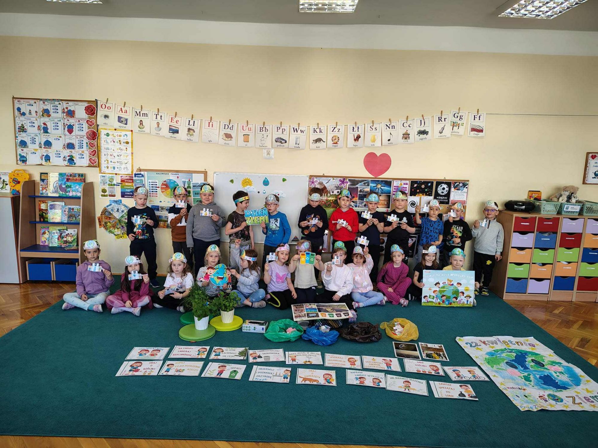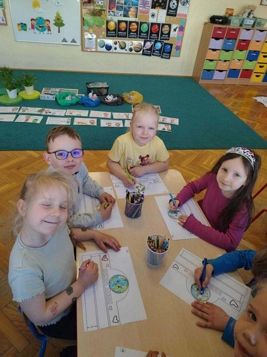 22 kwietnia - Światowy Dzień Ziemi to największe i najbardziej popularne święto ekologiczne na świecie. W tym dniu w Publicznym Przedszkolu Nr 1 w Ozimku zorganizowaliśmy dla naszych przedszkolaków wiele różnych zabaw z ekologią w tle. Dzieci miały okazję także porozmawiać o tym, co sprawia, że ziemia jest smutna (zanieczyszczona) oraz co możemy zrobić dla ziemi, aby była szczęśliwa (czysta). Przedszkolaki przypomniały sobie także zasady segregacji śmieci. Oczywiście nie zabrakło pięknych prac plastycznych o tematyce ekologicznej wykonanych rękami dzieci. Natomiast przedszkolaki z grupy Tygryski i Witaminki również w sposób praktyczny pokazały, że dbają o środowisko i pozbierały śmieci w okolicy przedszkola.