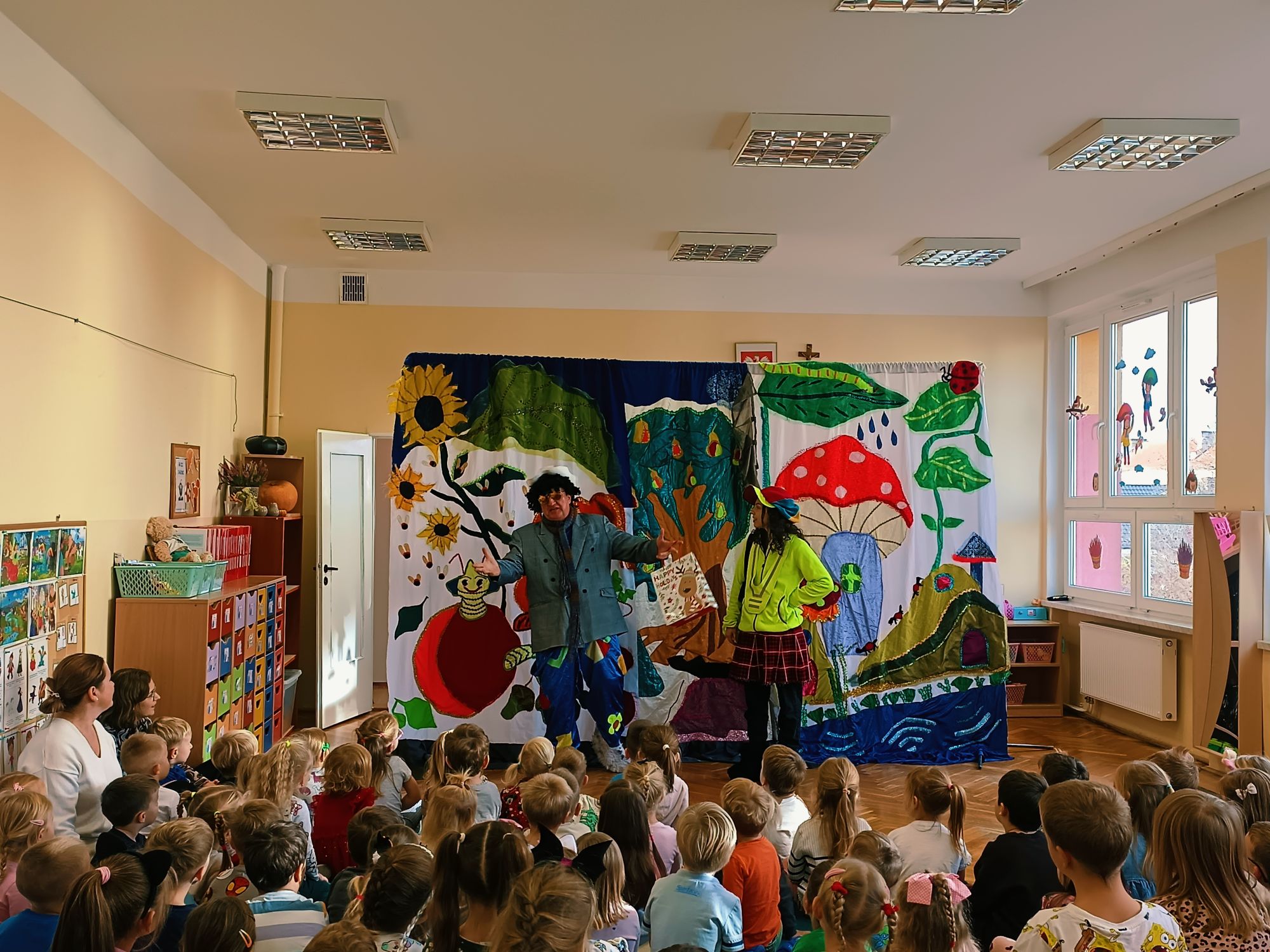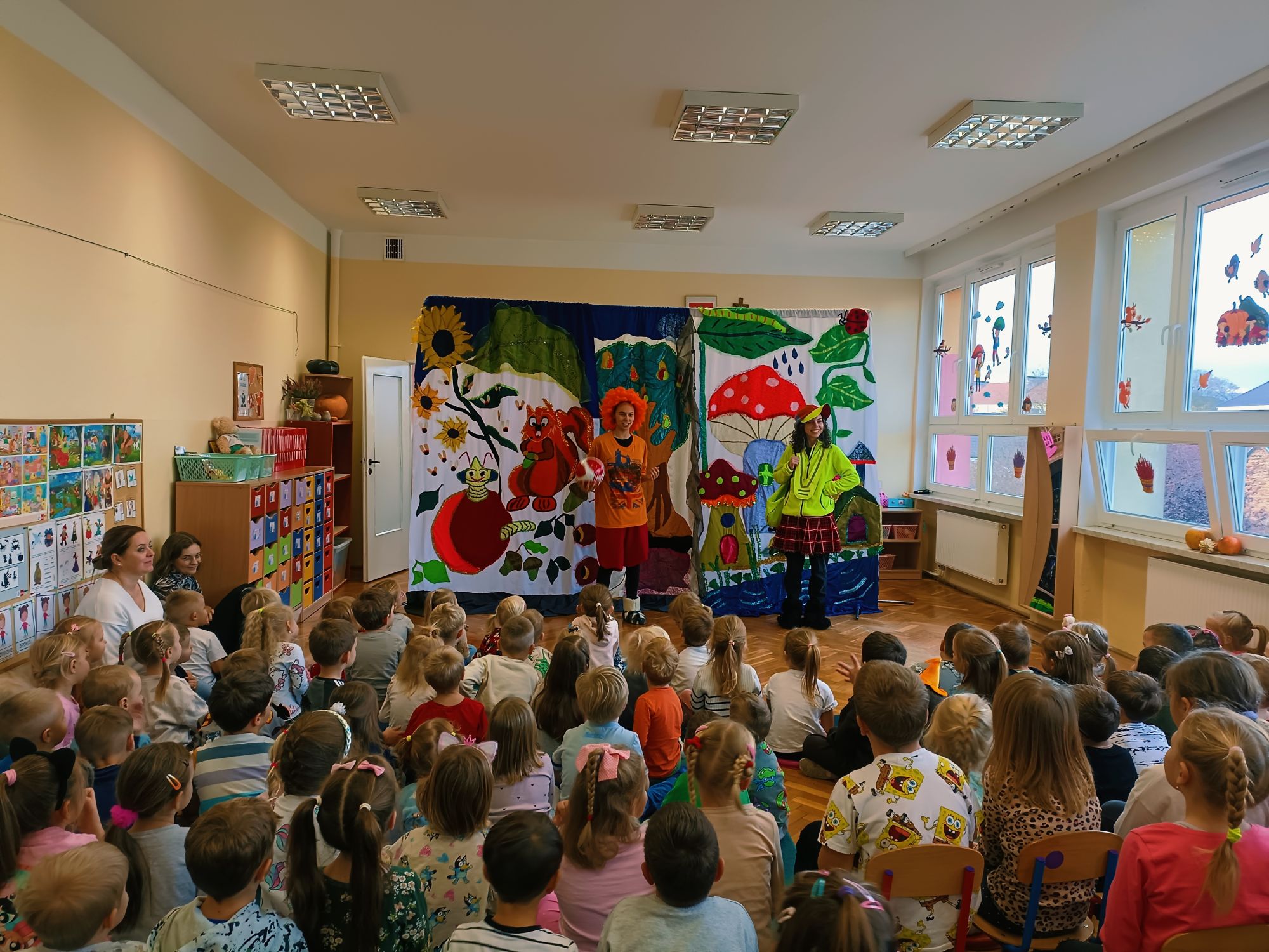 30 października 2025 roku w Przedszkolu Publicznym Nr 1 w Ozimku odbyło się przedstawienie, pt. „Kalejdoskop zagrożeń” w wykonaniu dobrze nam już znanych aktorów z Teatru Kanon z Krakowa. Przedstawienie to opowieść o zabawnym Stasiu i jego przyjaciółce Dorotce. Aktorzy w bardzo przystępny, a jednocześnie humorystyczny sposób przedstawili zagadnienia związane ze zdrowiem oraz bezpieczeństwem. Dzieci podczas spektaklu utrwaliły zasady przechodzenia przez jezdnię, numery alarmowe, zasady zachowania w kontakcie z obcym, a także sposoby zachowania się w kontakcie z obcym psem w warunkach zabudowanych jaki i na łonie natury. Bohaterowie naszego przedstawienia zwrócili także uwagę na to , że nasi najmłodsi zawsze powinni mówić prawdę rodzicom, a także informować dorosłych o każdym wyjściu nawet na podwórko. Przedszkolaki zostały również uświadomione jak ważne jest noszenie odblasków. Dzieciom bardzo podobało się całe przedstawienie, a co najważniejsze wyniosły z niego dużo cennej wiedzy.